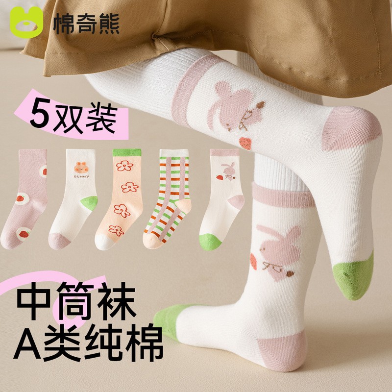 어린이 양말 소녀 가을과 겨울 코튼 중간 길이 양말 코튼 양말 아기 봄과 가을 소녀 겨울 긴 튜브 여성의 보물 어린이 양말스토어 가기
