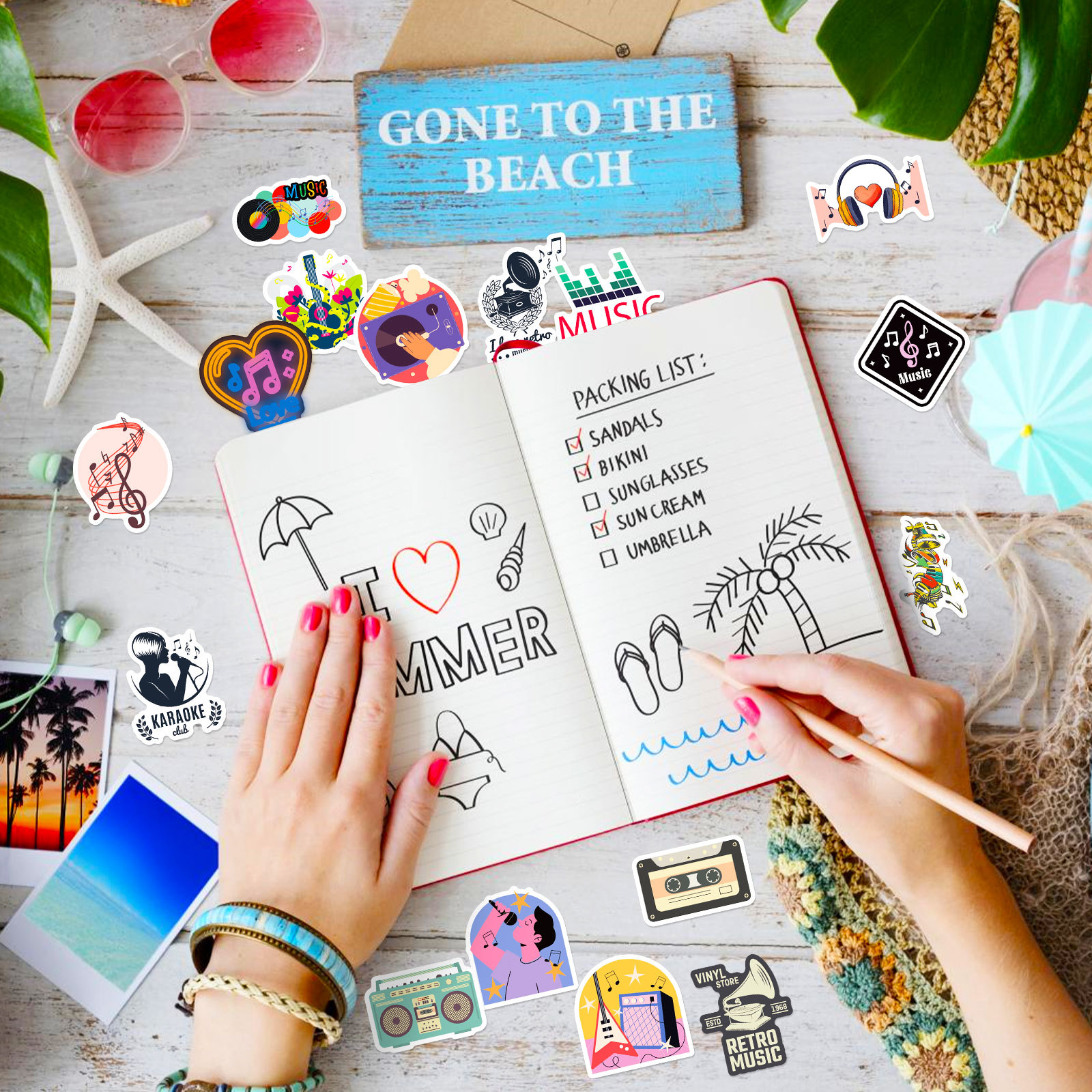 50 어린이 스티커 헤드폰 음악 무거운 샘플 국경 아마존 컴퓨터 수하물 초등학생 보상 스티커스토어 가기