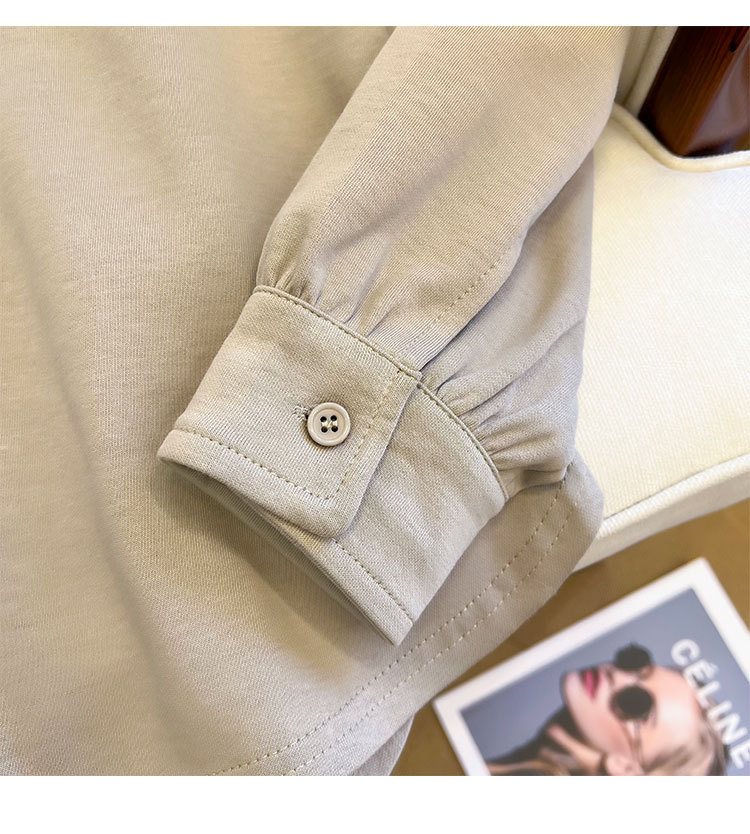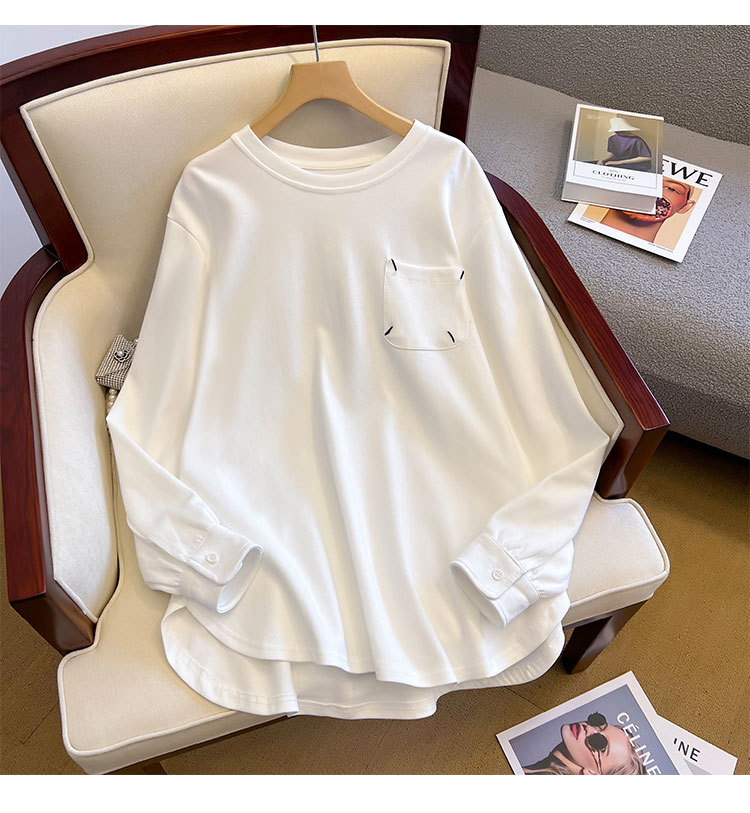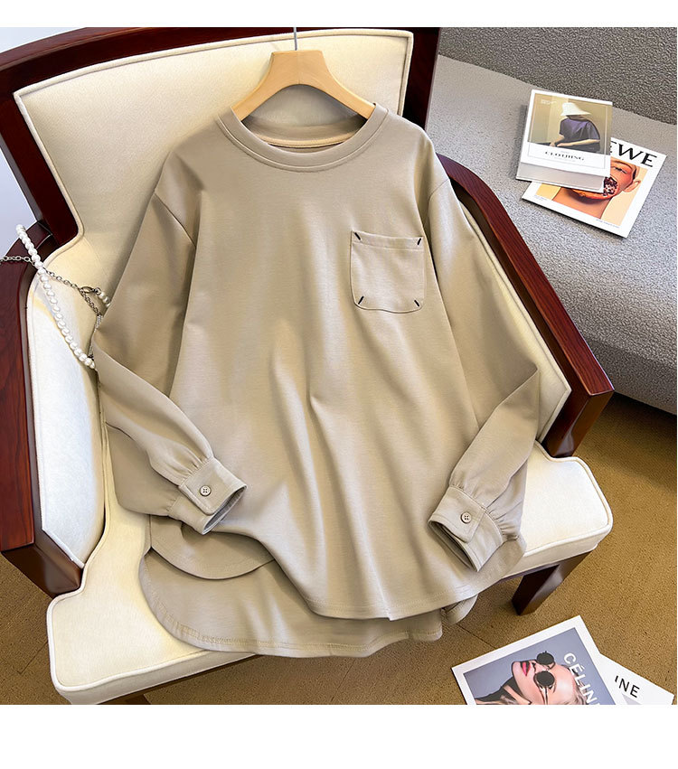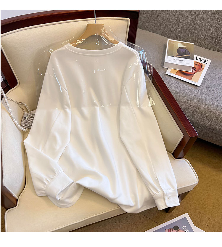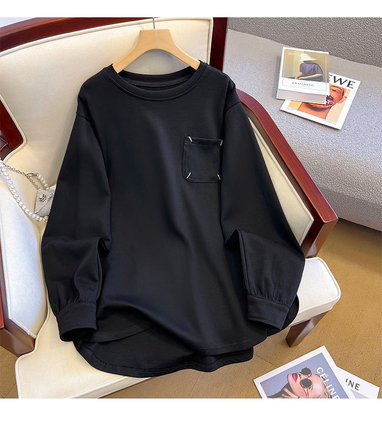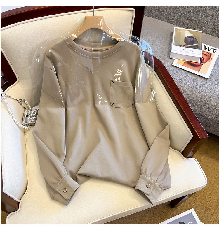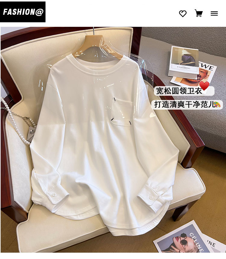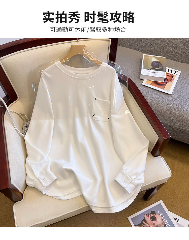 기모 두꺼운 둥근 목 t 긴 소매 셔츠 가을과 겨울 새로운 디자인 감각 틈새 느슨한 게으른 바람 스웨터 최고 도매스토어 가기