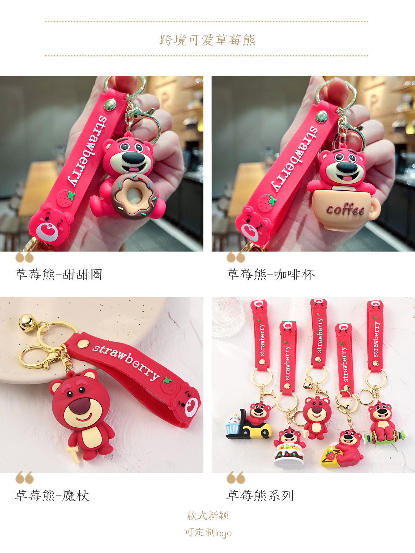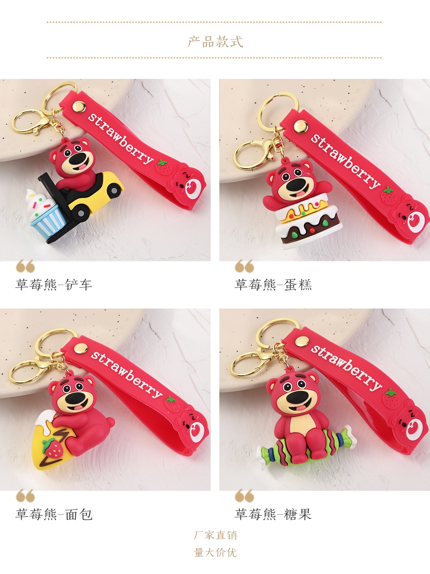 크로스 보더 귀여운 딸기 곰 열쇠 고리 베리 걱정 인형 자동차 키 펜던트 커플 작은 선물 도매스토어 가기