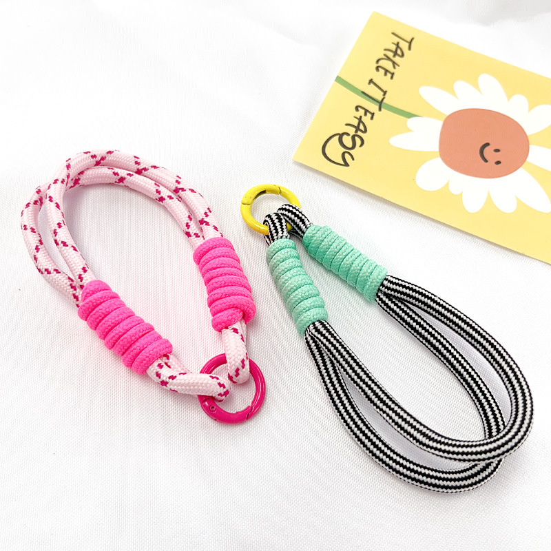 도파민 컬러 매칭 매듭 휴대 전화 끈 DIY 짠 손목 로프 휴대 전화 체인 휴대 전화 케이스 유니버설 짧은 끈