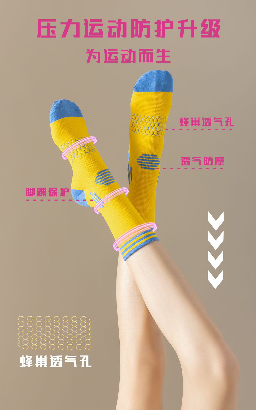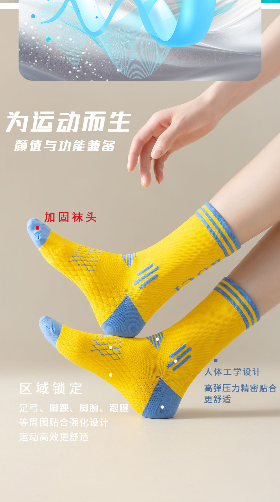 스텝 스피치 가을과 겨울 새로운 남녀 프로 스포츠 충격 흡수 중간 종아리 압축 양말 마라톤 달리기 빠른 건조 통기성 양말