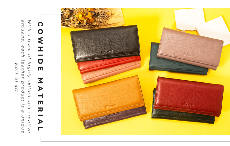 국경 간 긴 정품 가죽 지갑 첫 번째 레이어 소 가죽 자갈 클러치 가죽 지갑 숙녀 긴 클립 도매 대용량스토어 가기