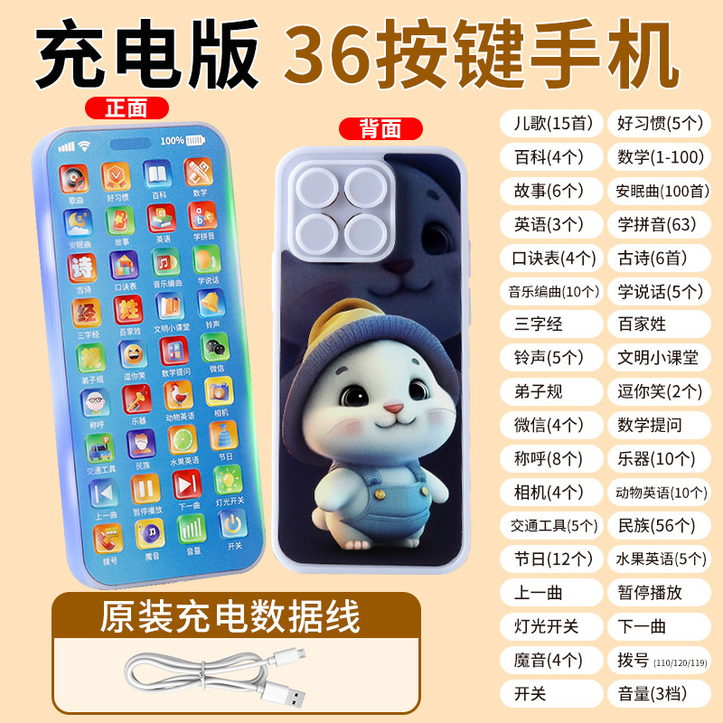 • USB 직접 충전) 중형 유아교육용 휴대폰 - 36개 키