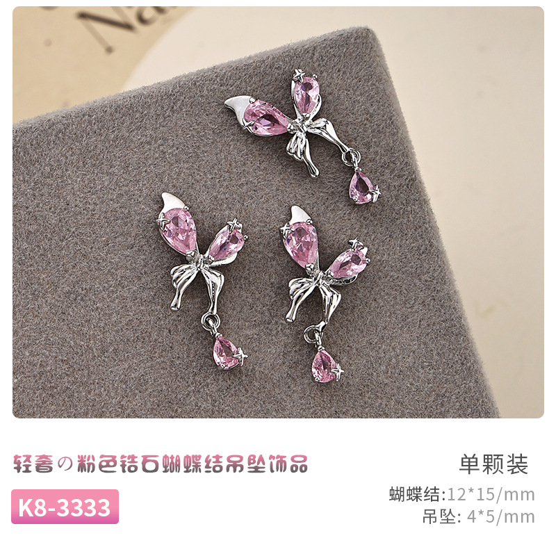 네일 다이아몬드 핑크 지르콘 보우 펜던트 보석 새로운 항목 럭셔리 실버 나비 사랑 다이아몬드 인터넷 연예인 폭발스토어 가기