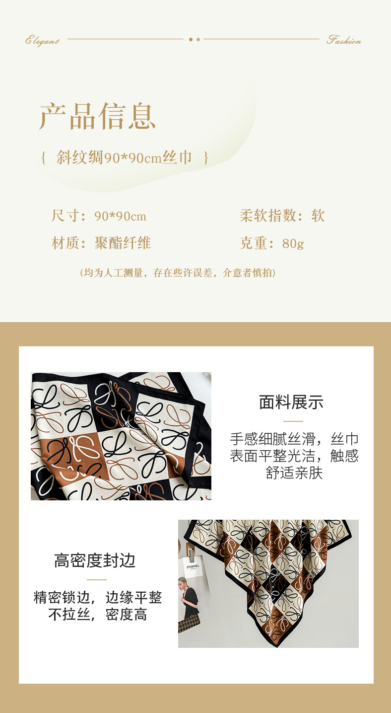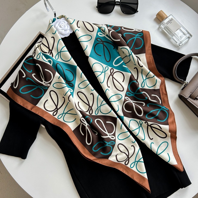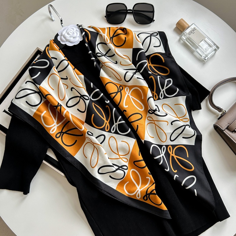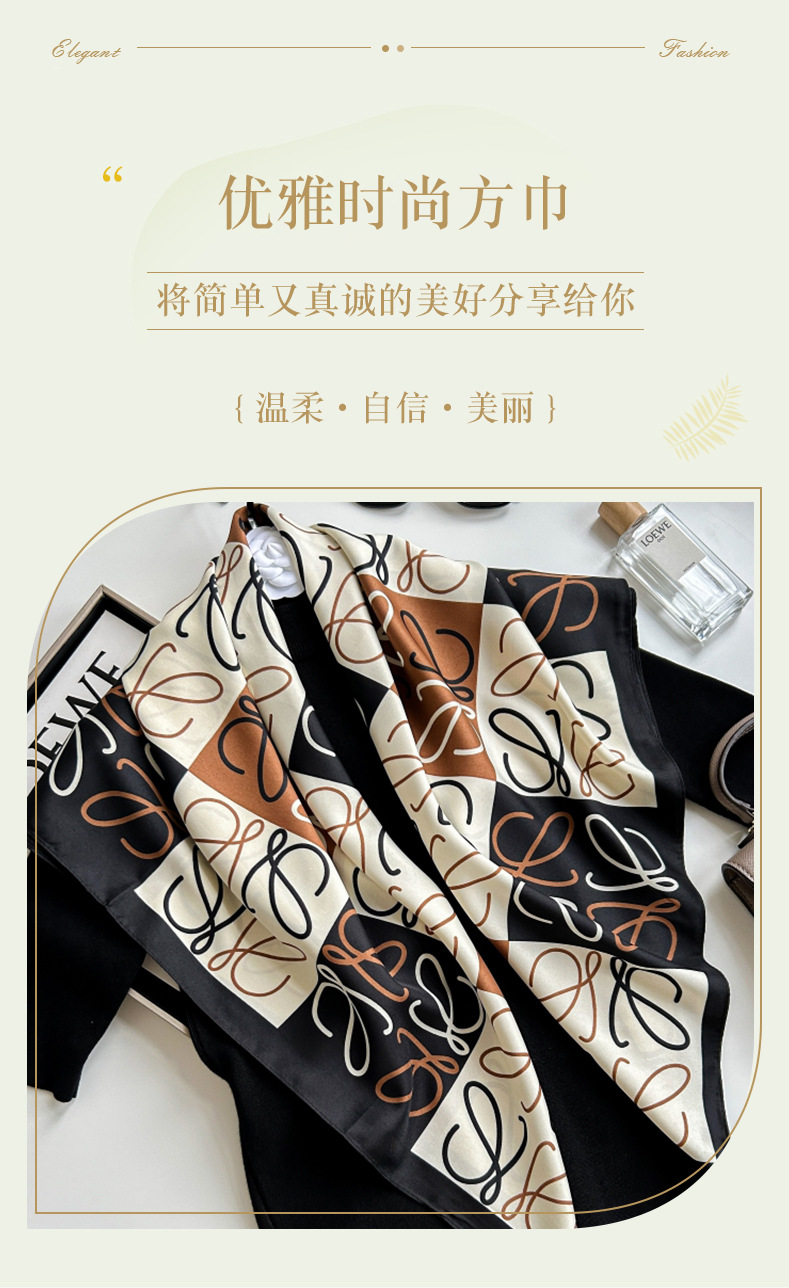 새로운 패션 모든 일치 카키 기하학적 인쇄 실크 손 느낌 컬링 빛 럭셔리 고급 실크 스카프