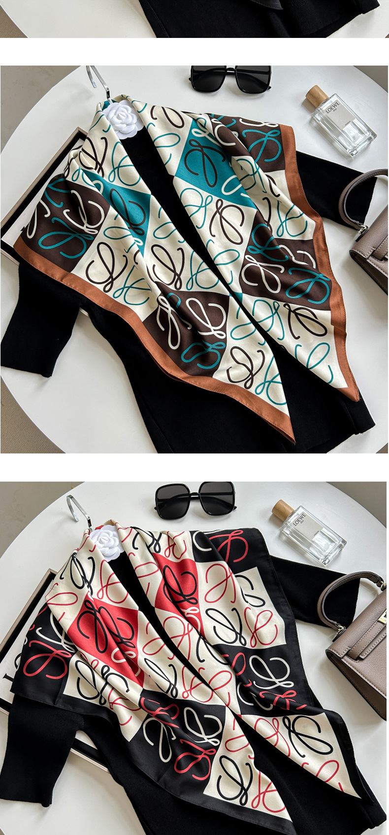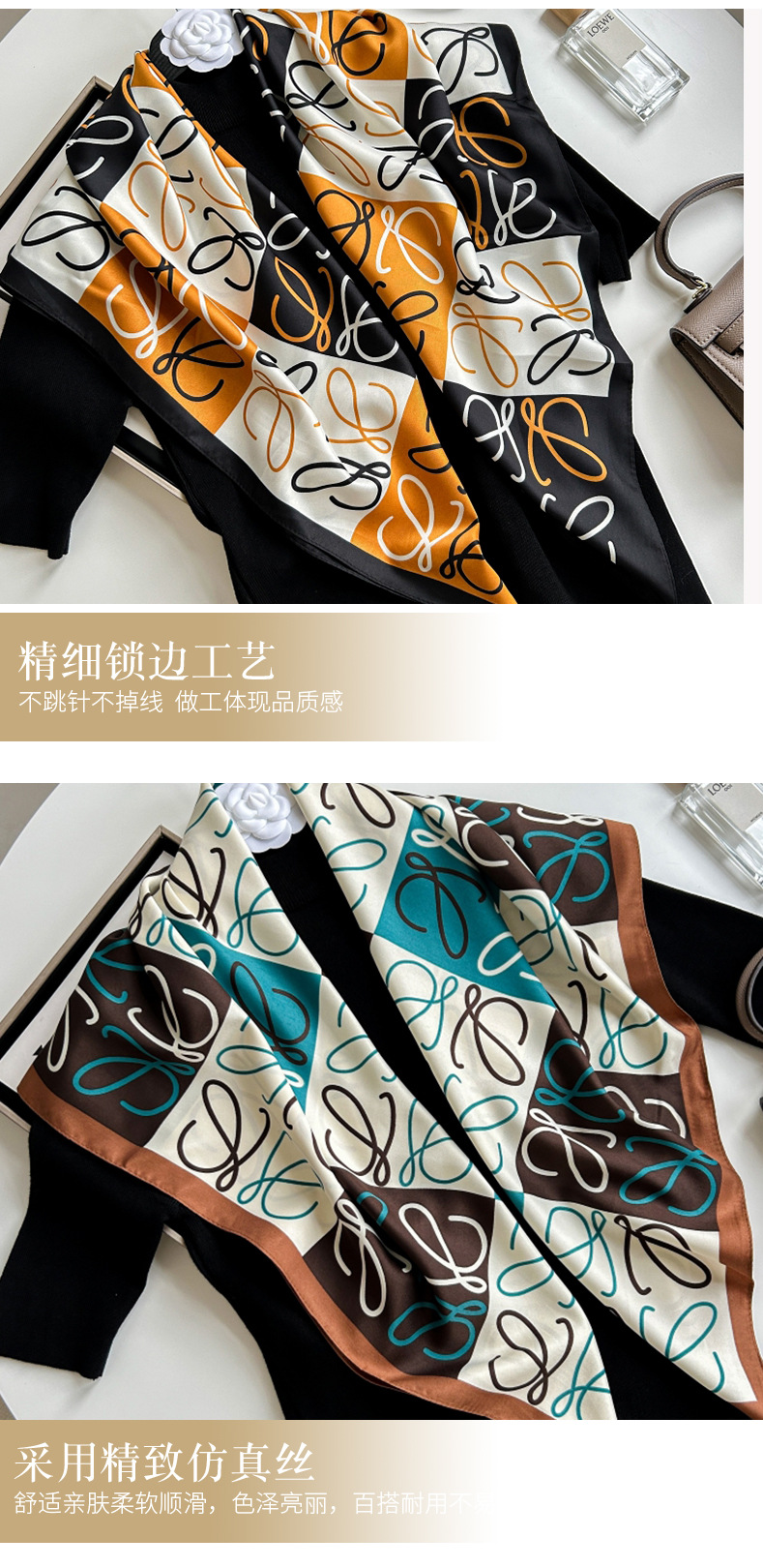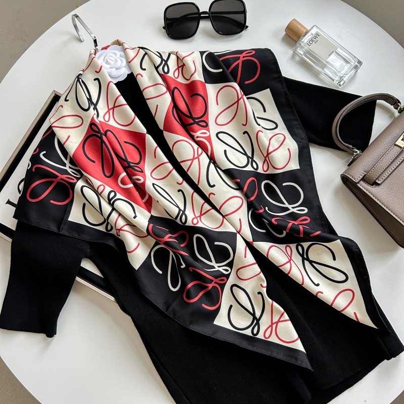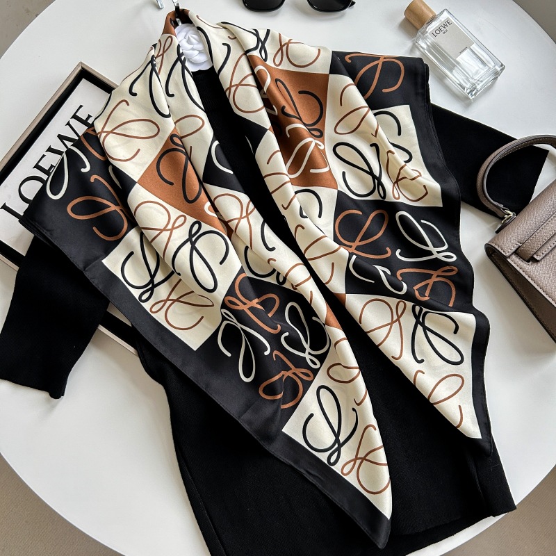 새로운 패션 모든 일치 카키 기하학적 인쇄 실크 손 느낌 컬링 빛 럭셔리 고급 실크 스카프
