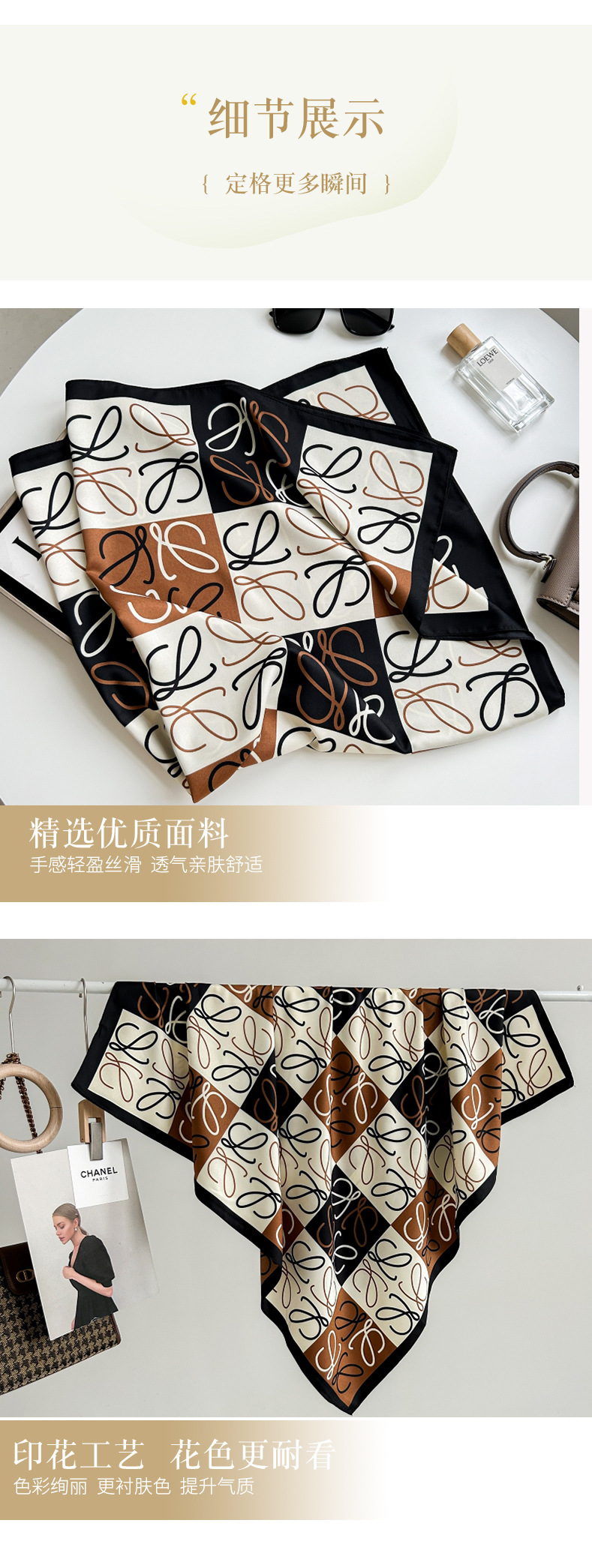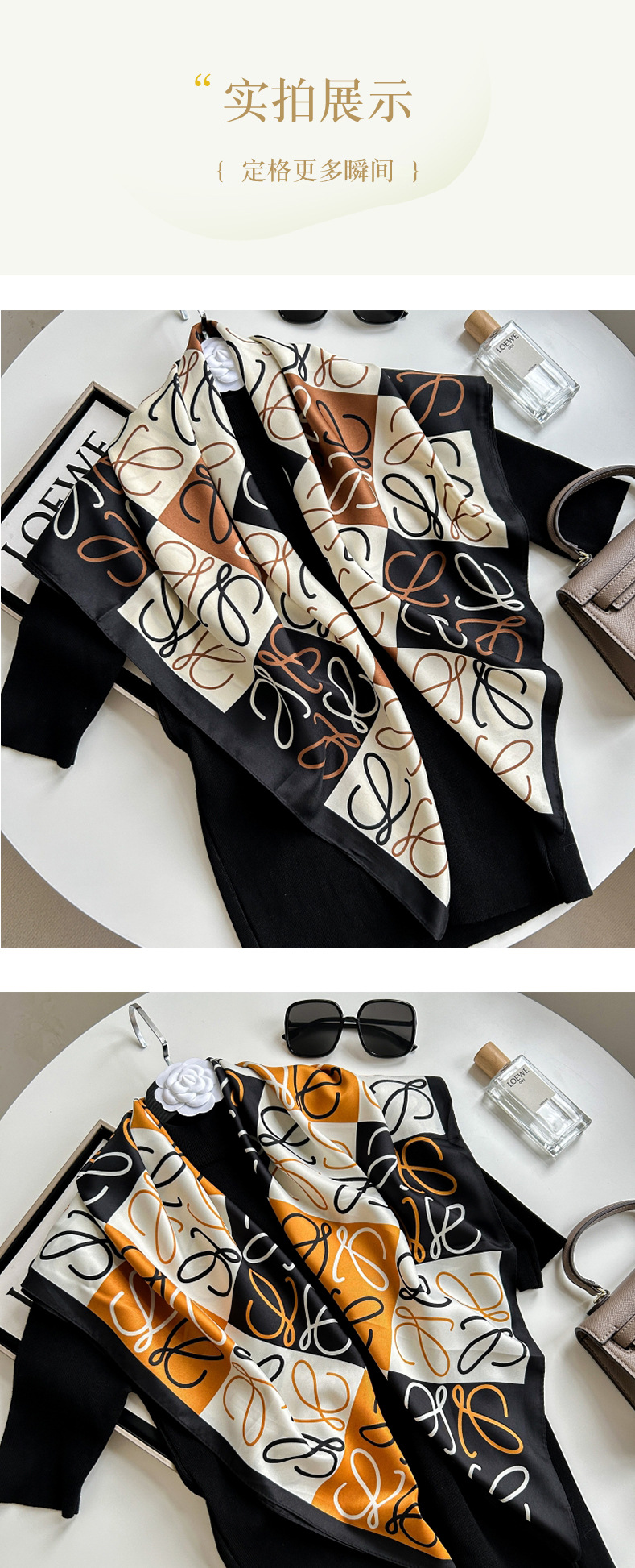 새로운 패션 모든 일치 카키 기하학적 인쇄 실크 손 느낌 컬링 빛 럭셔리 고급 실크 스카프스토어 가기
