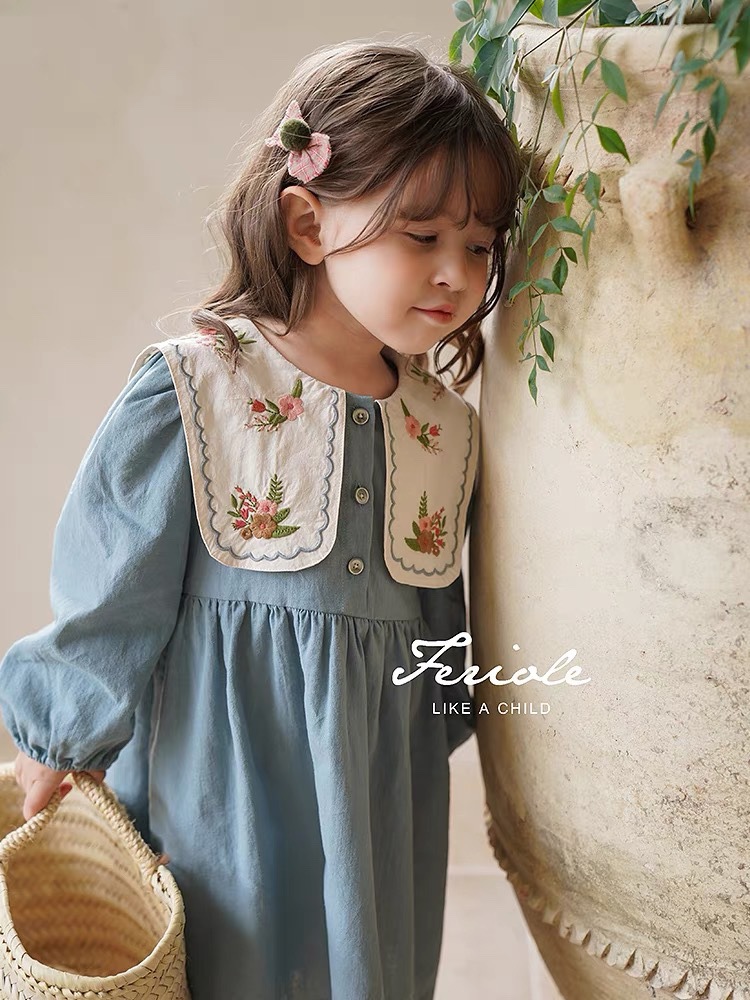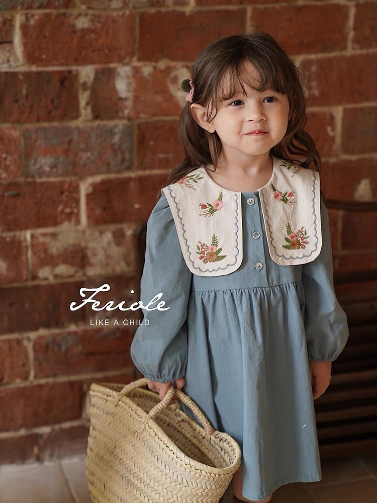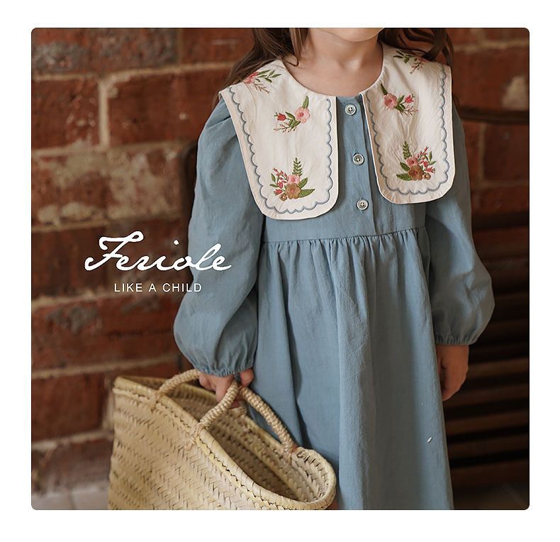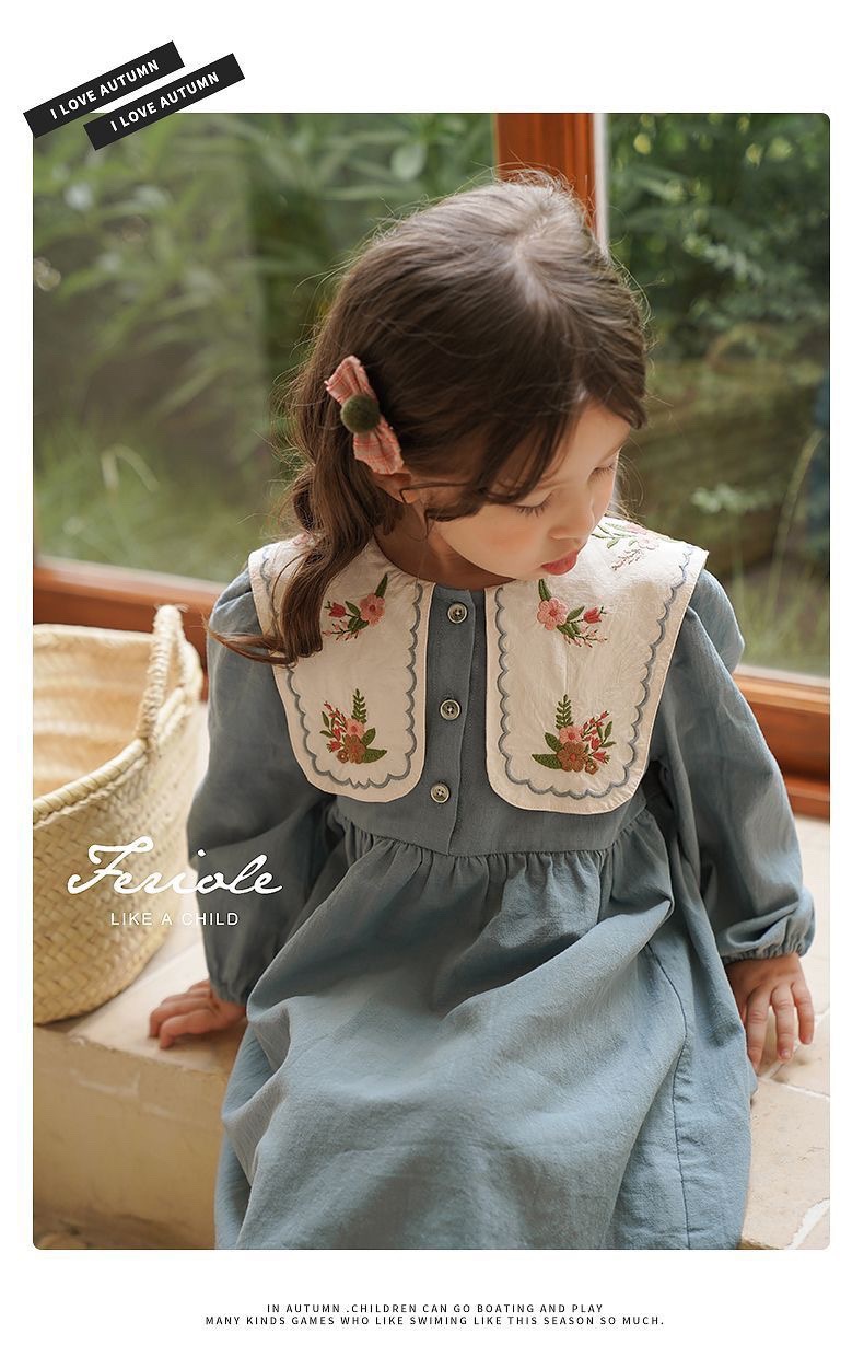 Jella 아동 의류 소녀 수 놓은 드레스 2025 가을 어린이 프랑스어 옷깃 수 놓은 공주 드레스 국경 간 도매스토어 가기