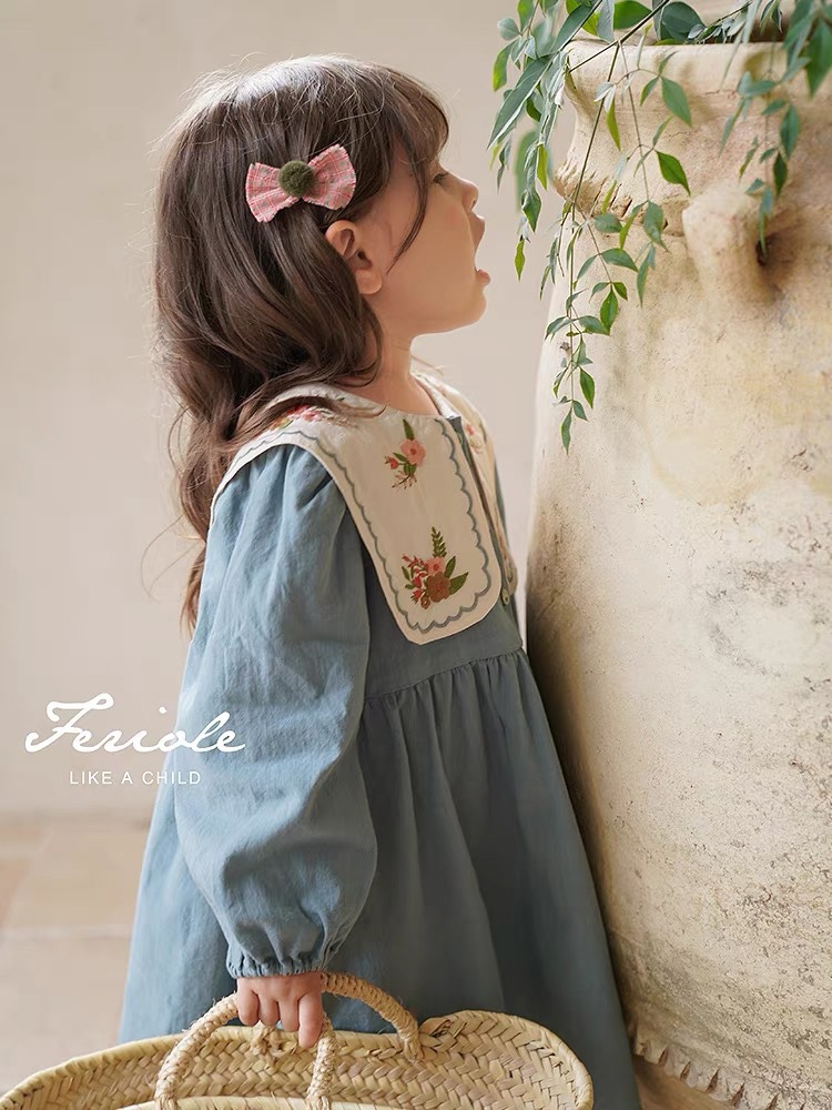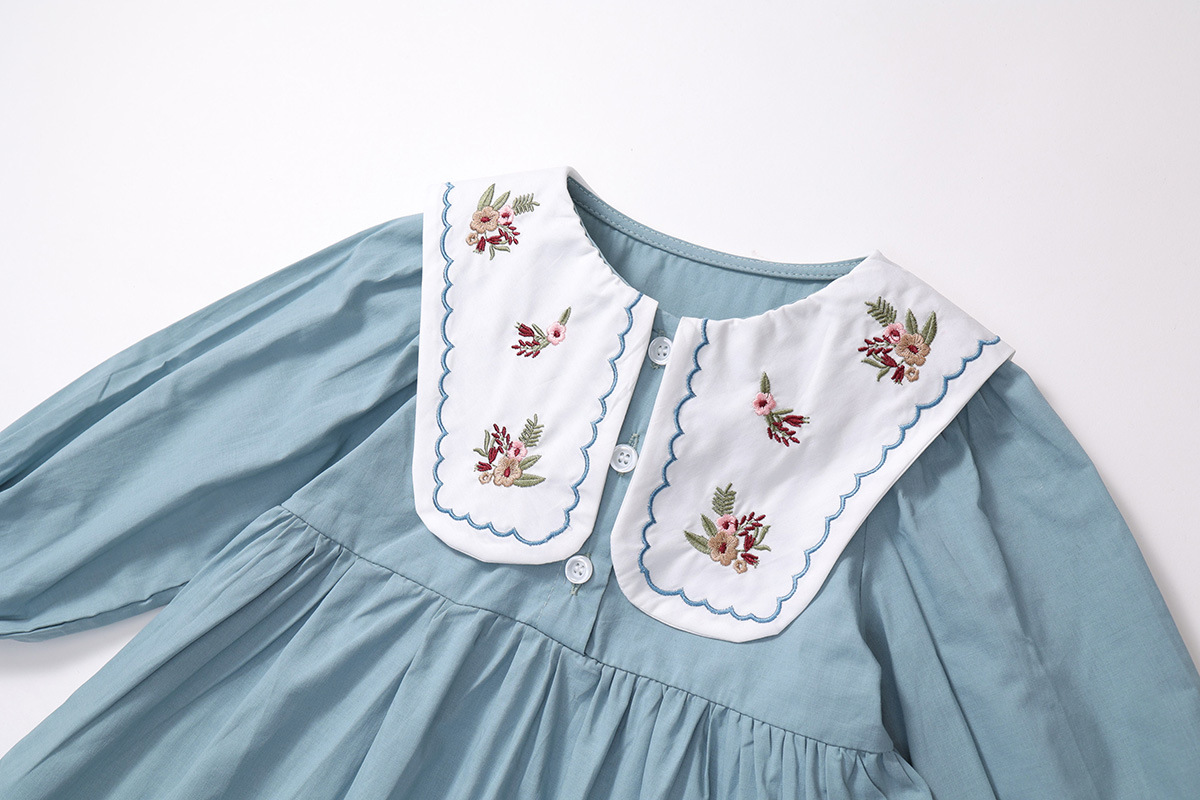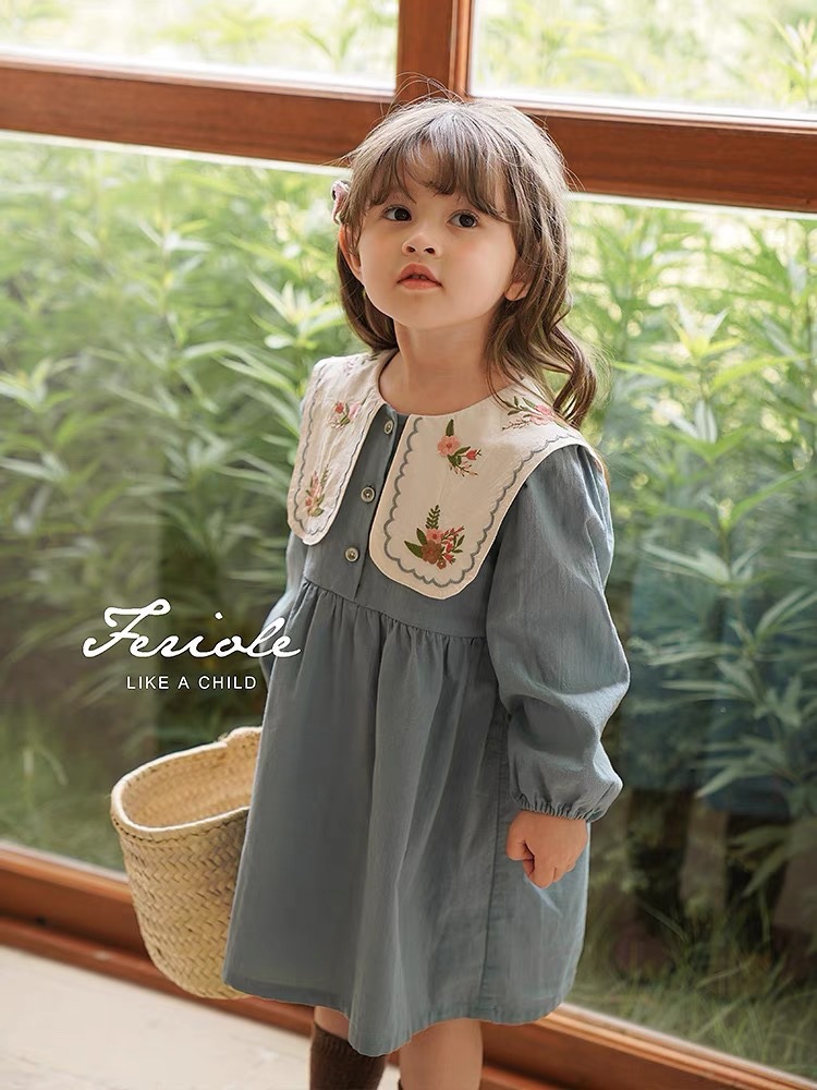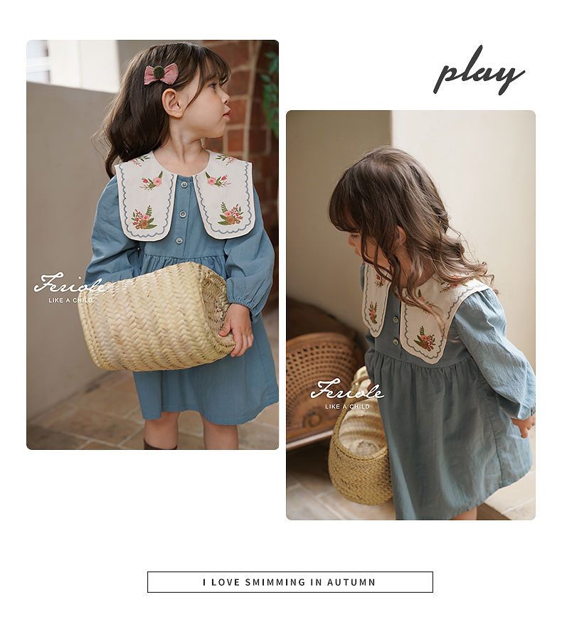 Jella 아동 의류 소녀 수 놓은 드레스 2025 가을 어린이 프랑스어 옷깃 수 놓은 공주 드레스 국경 간 도매스토어 가기