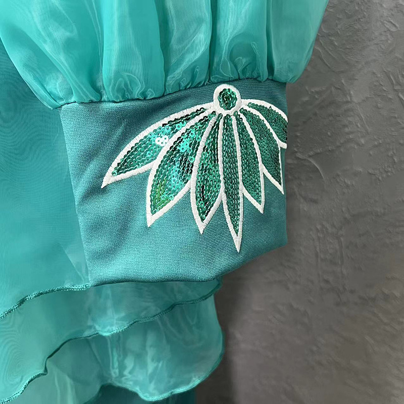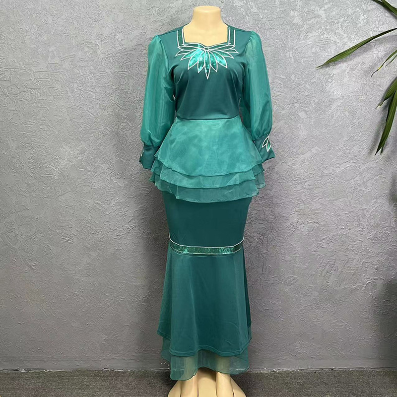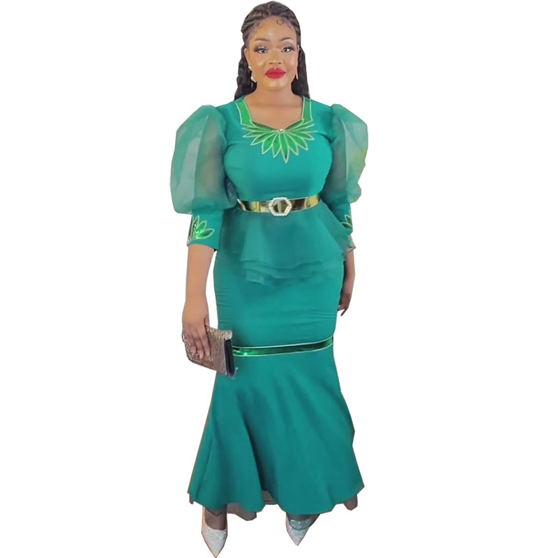 국경 간 소싱 아프리카 여성의 연꽃 잎 organza 버블 슬리브 탑 스커트 자수 스팽글 세트