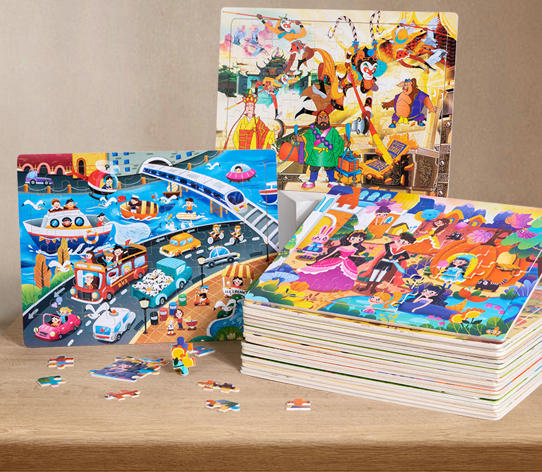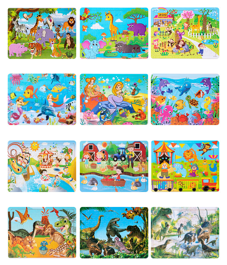 나무 80 조각 퍼즐 어린이 동물 만화 동화 비행기 퍼즐 아기 조기 교육 교육 빌딩 블록 장난감스토어 가기