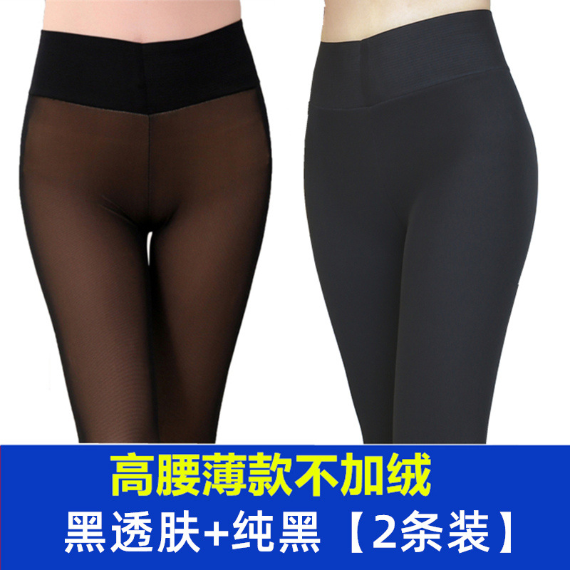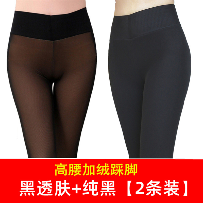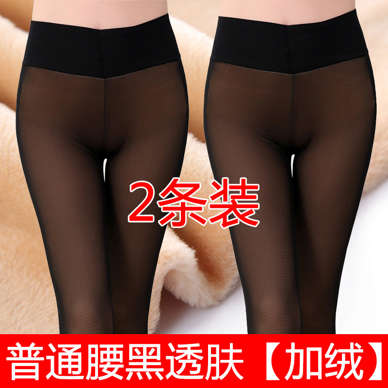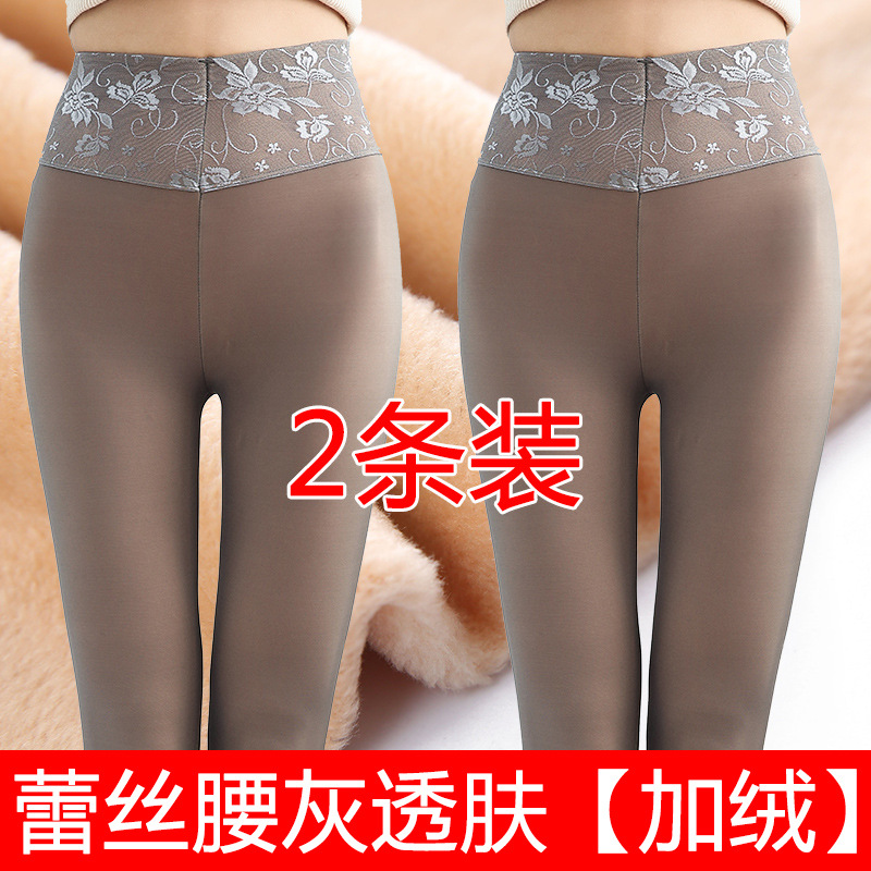가짜 고기 전달 메쉬 레깅스 여성의 가을과 겨울 아우터 기모 두꺼운 하이 웨이스트 탄성 플러스 사이즈 피부 전달 따뜻한 바지