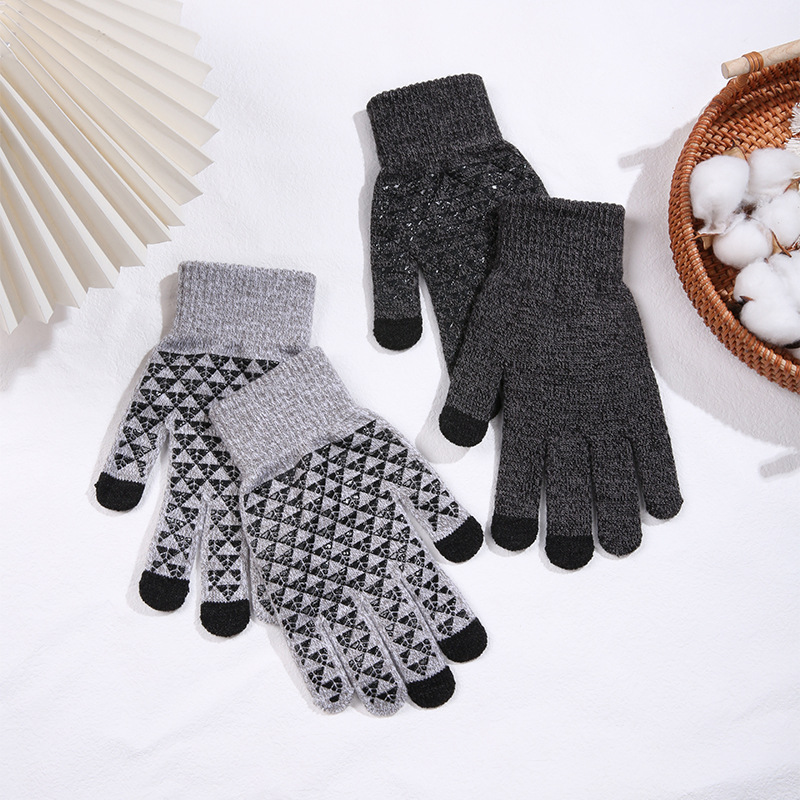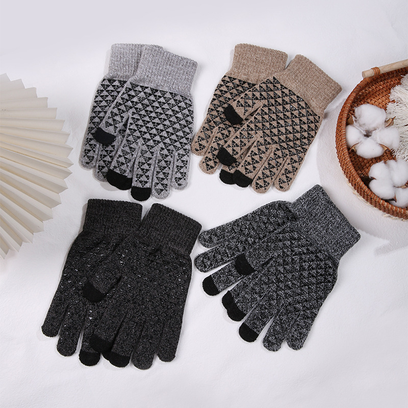 가을과 겨울에 남성과 여성을위한 터치 스크린 장갑 따뜻하고 방한 두꺼운 한국 니트 울 운전 및 승마 손가락 장갑