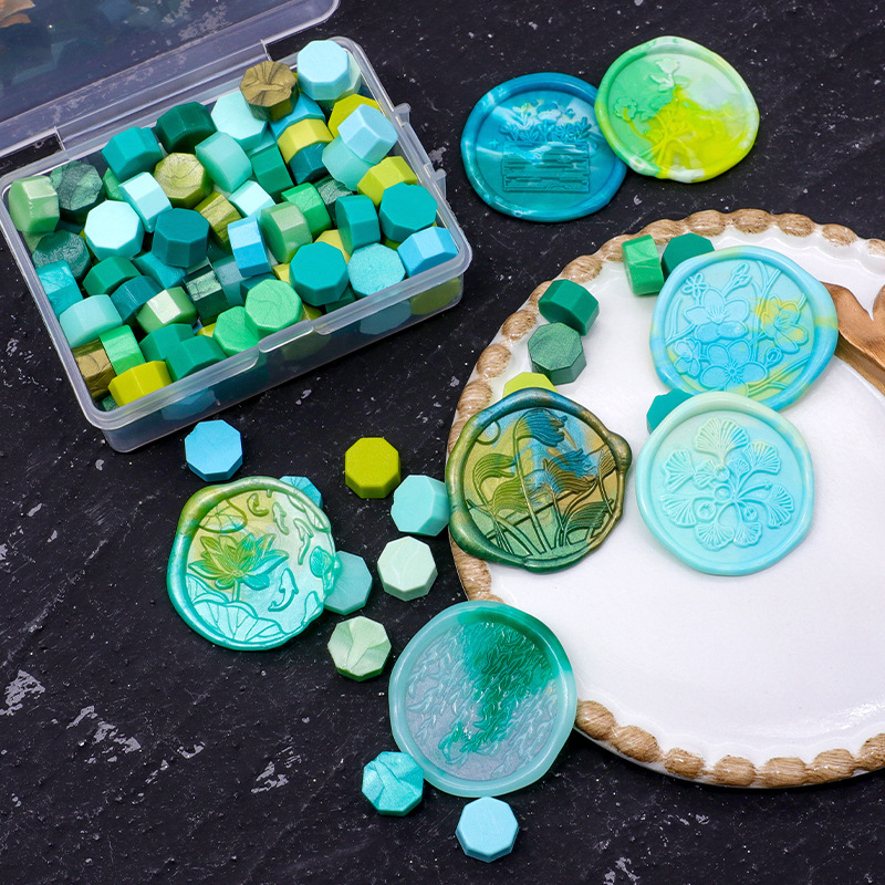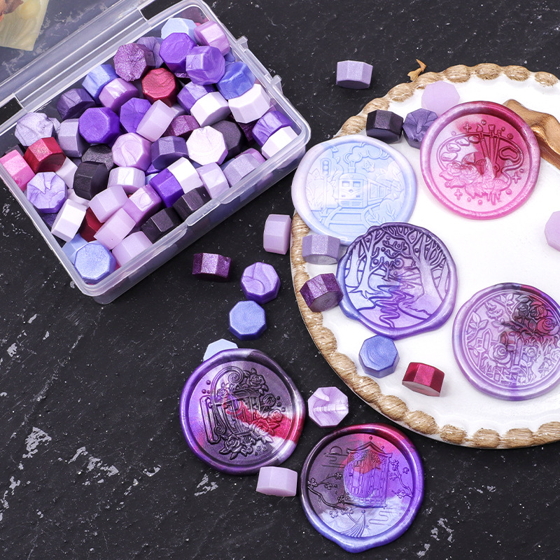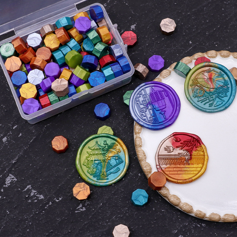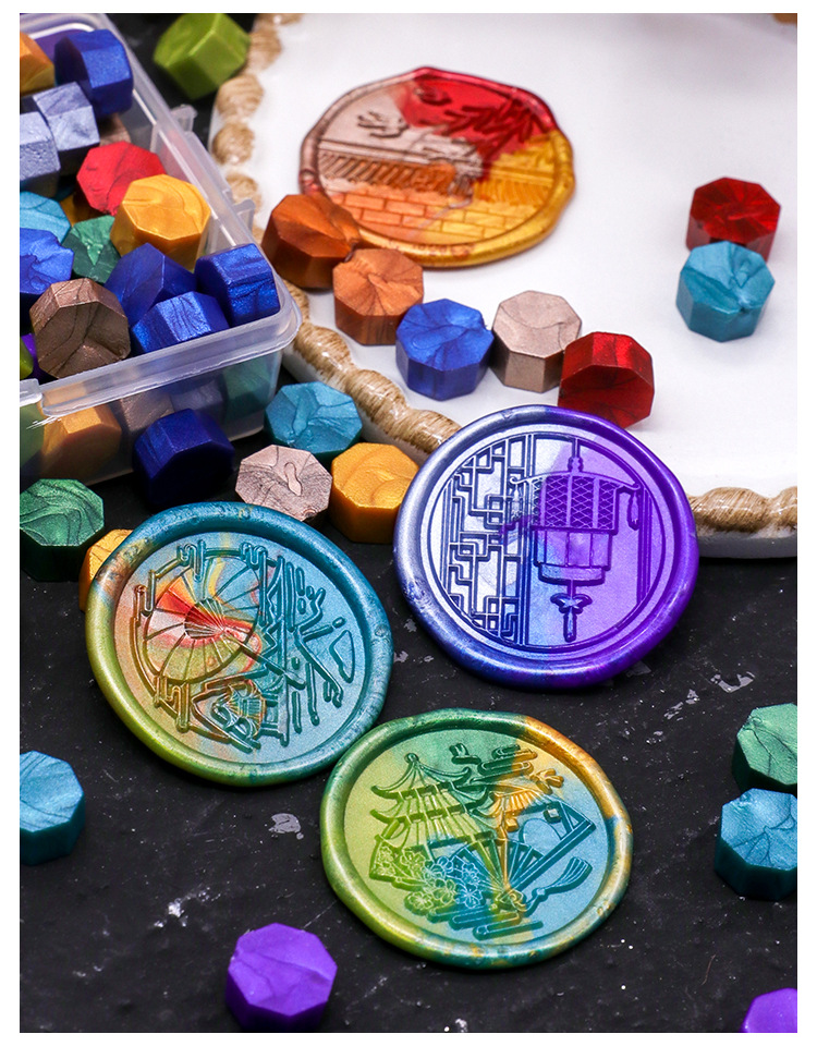화재 페인트 씰 왁스 입자 혼합 색상 밀봉 왁스 봉투 초대장 선물 상자 팔각형 화재 페인트 왁스 입자