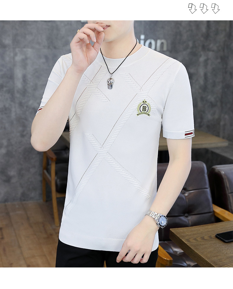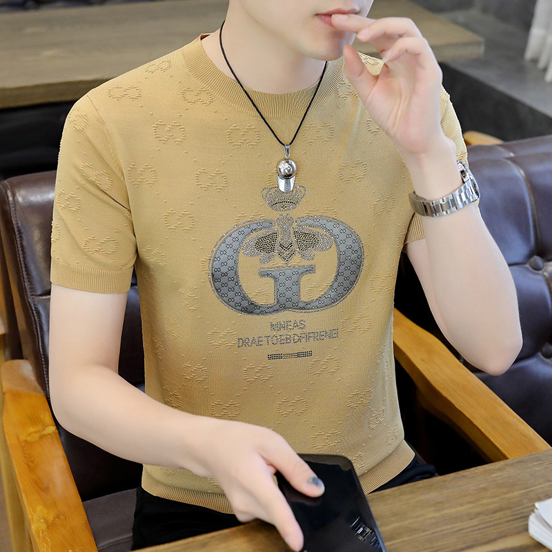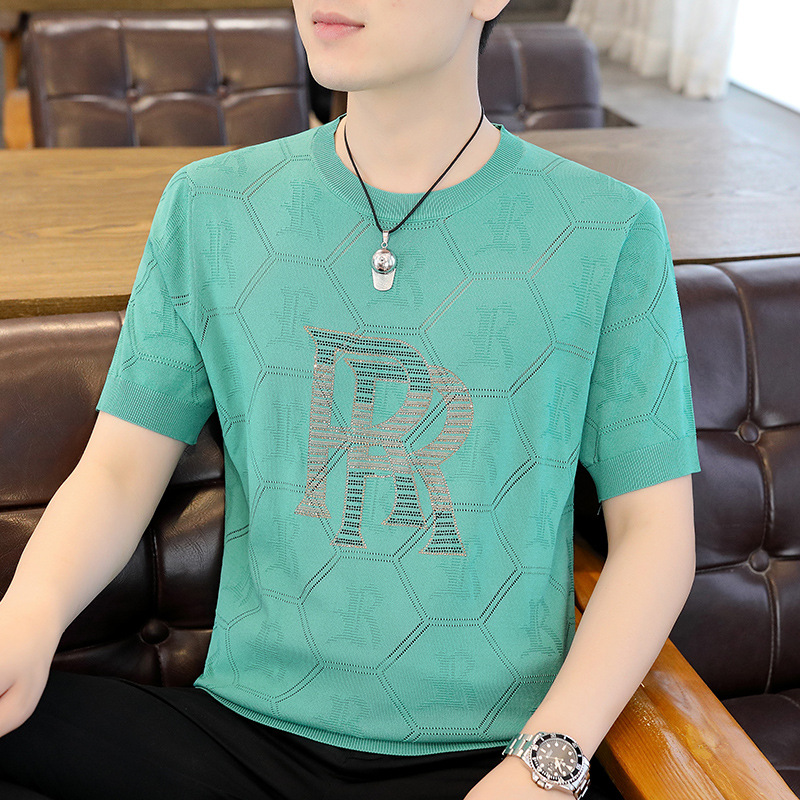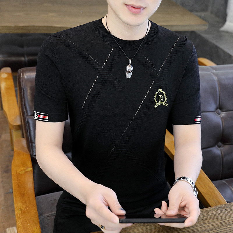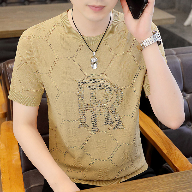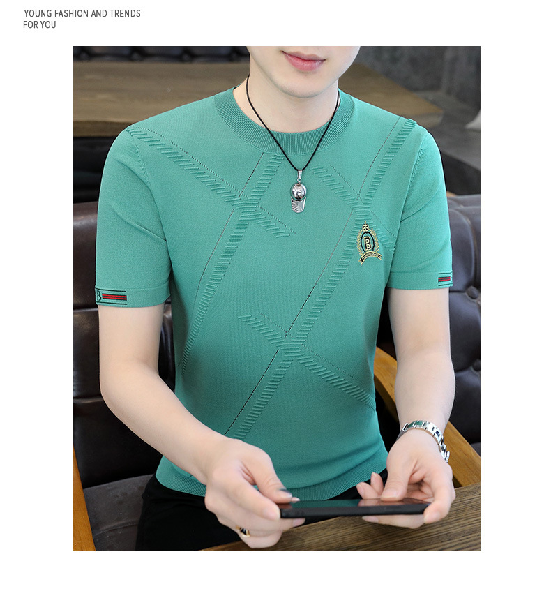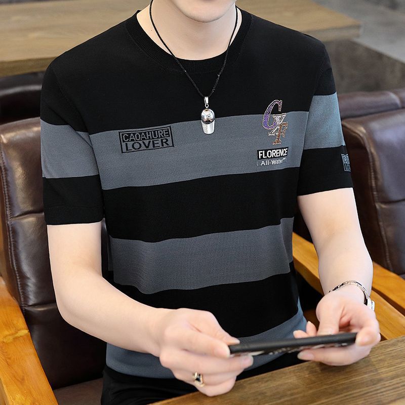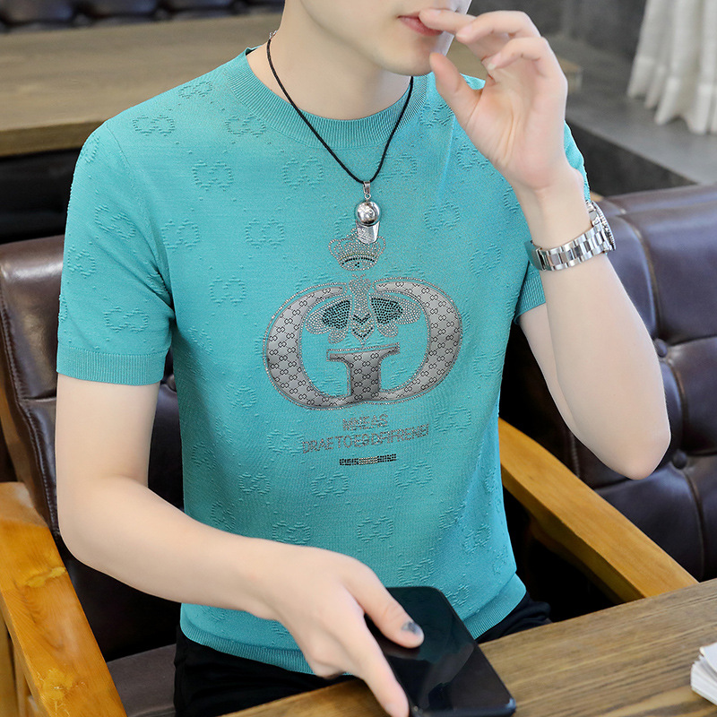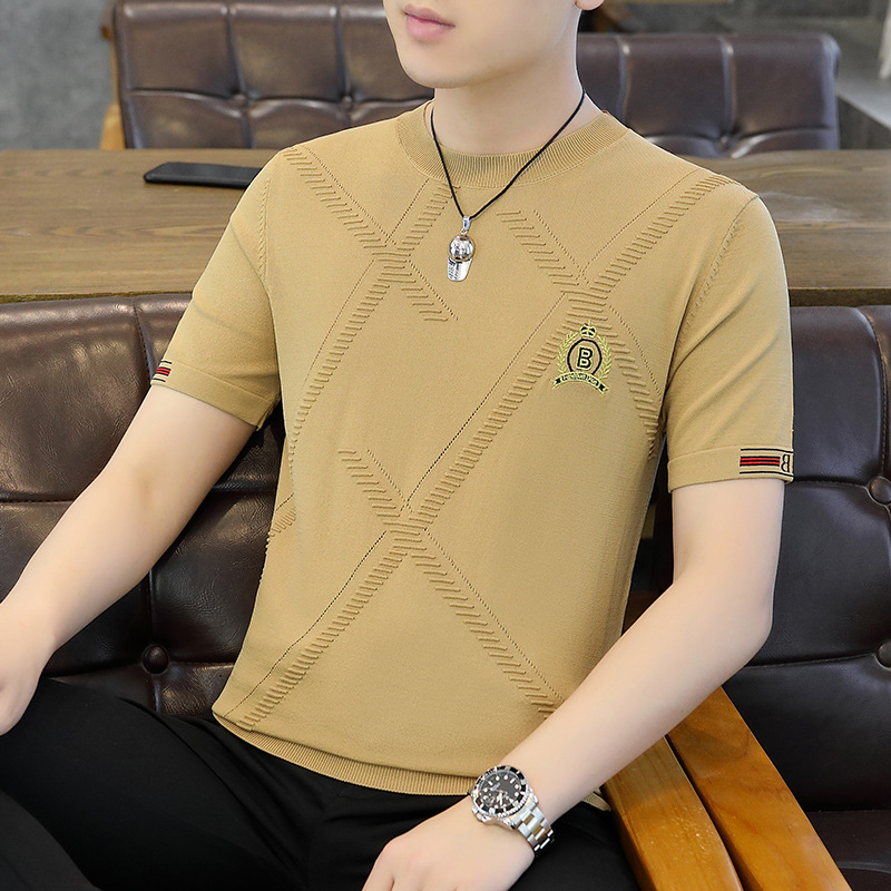 틱톡 인기 상품 니트 아이스 실크 반팔 남성 여름 2026 신상 트렌디 브랜드 슬림핏 고급 라운드넥 티셔츠 재고 있음