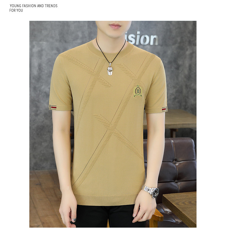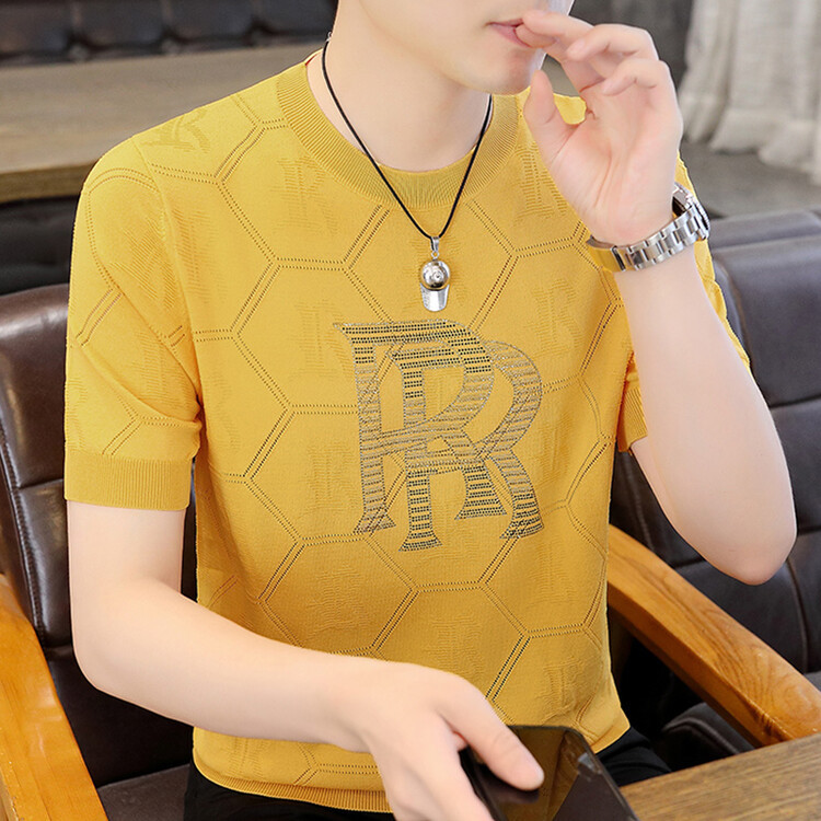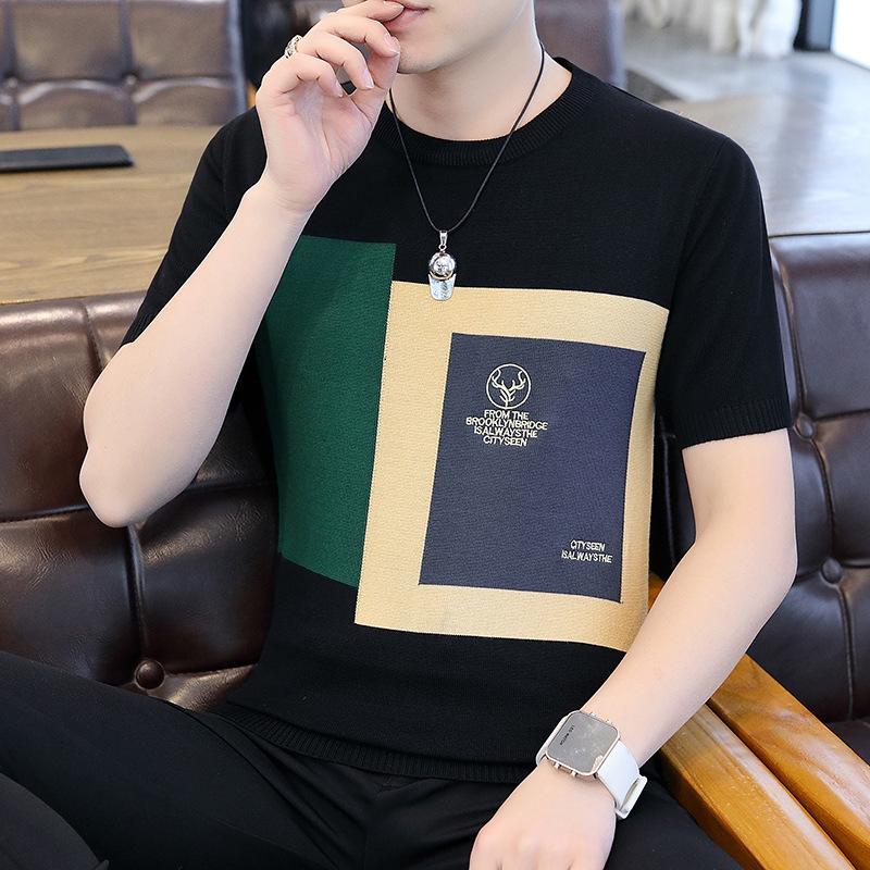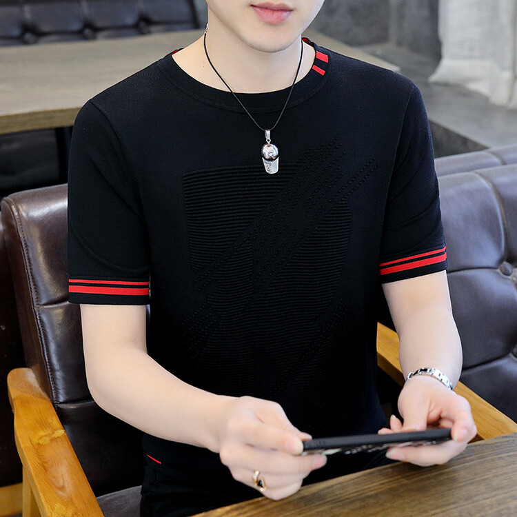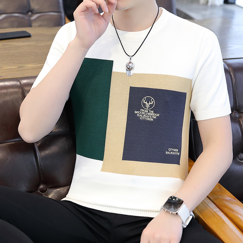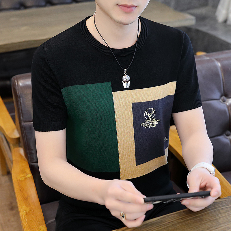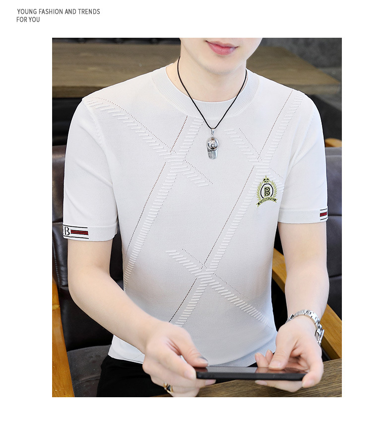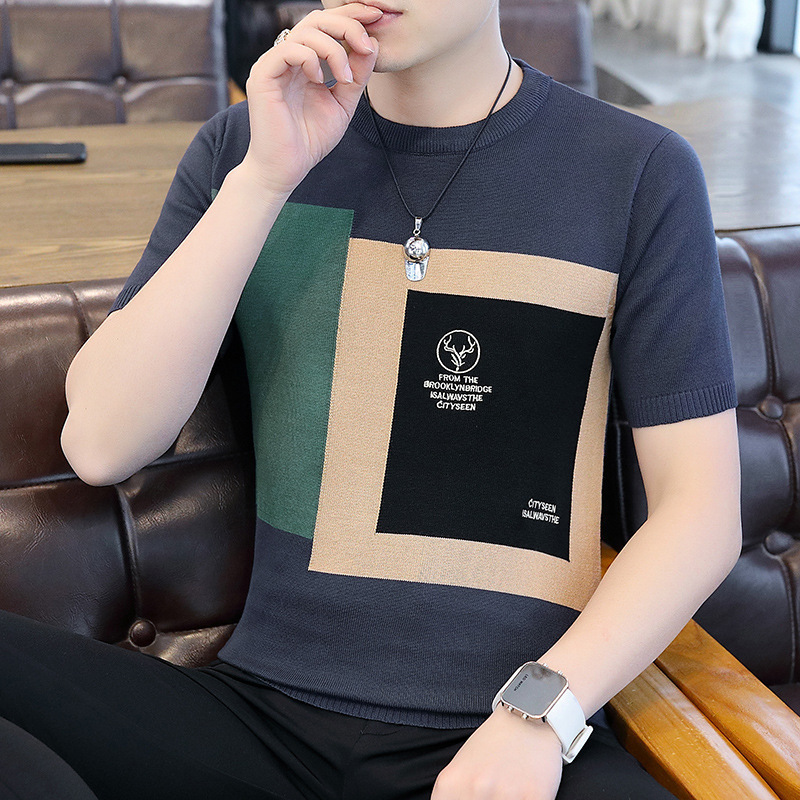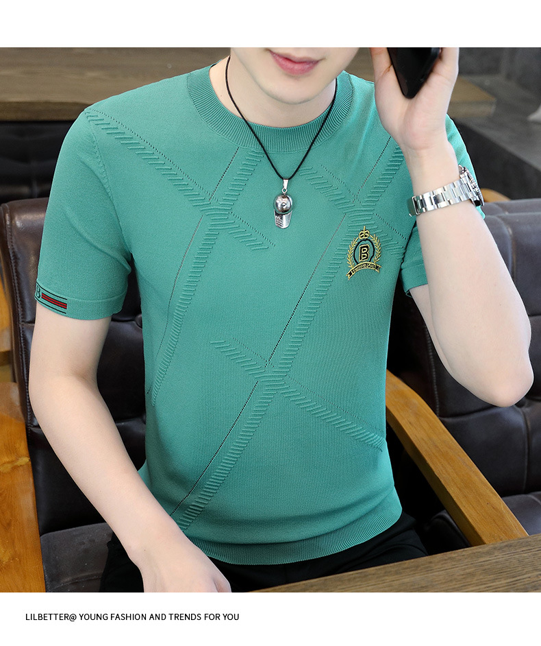 틱톡 인기 상품 니트 아이스 실크 반팔 남성 여름 2026 신상 트렌디 브랜드 슬림핏 고급 라운드넥 티셔츠 재고 있음