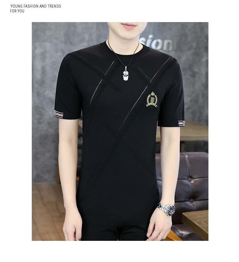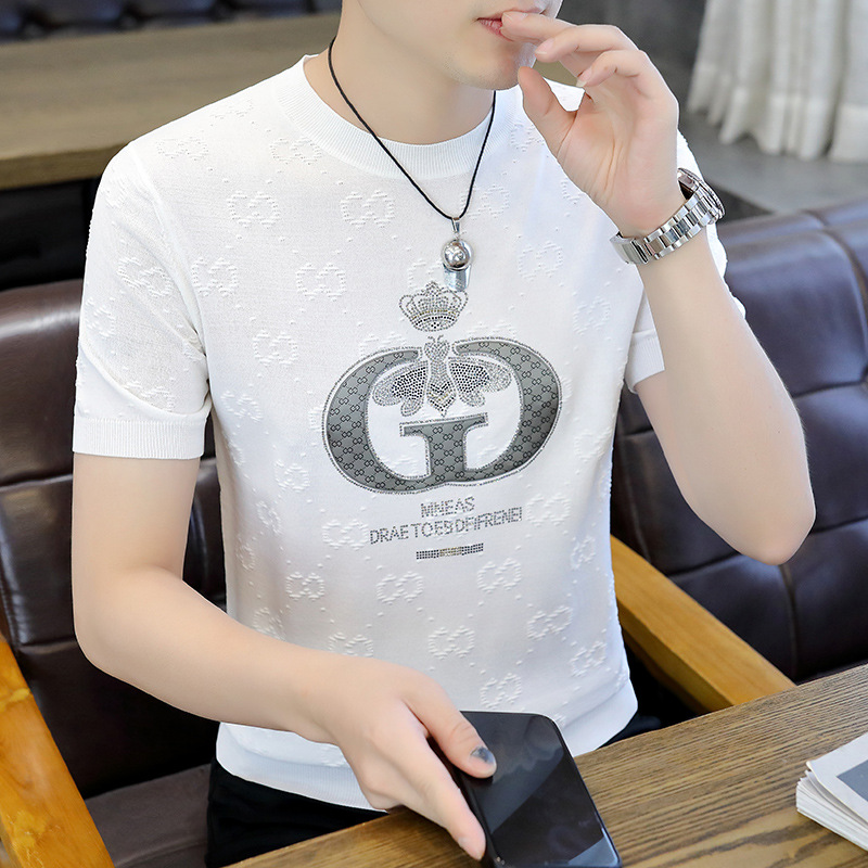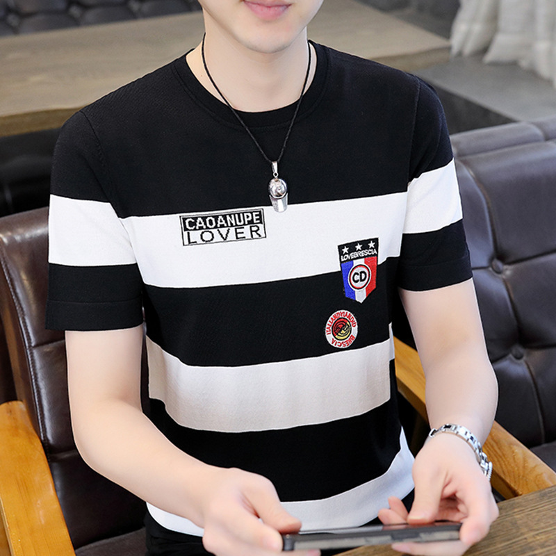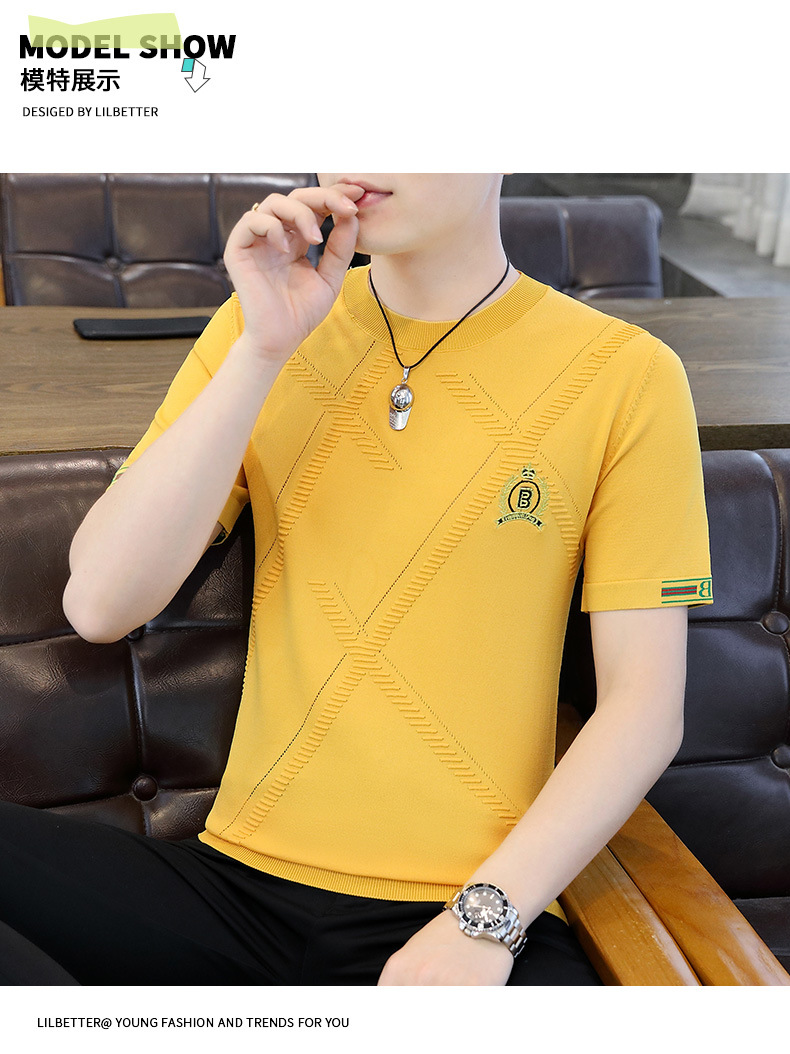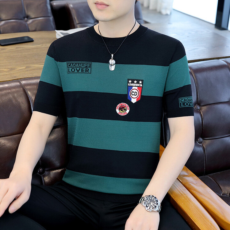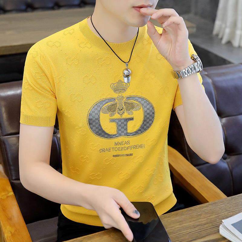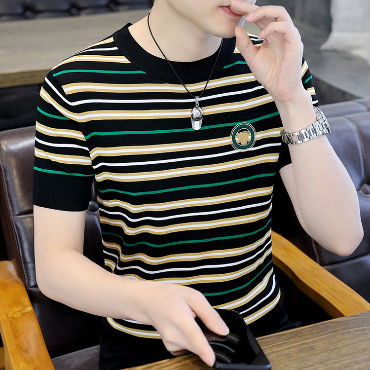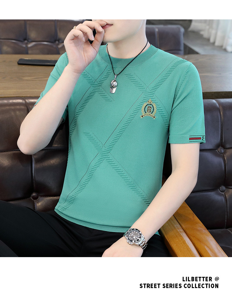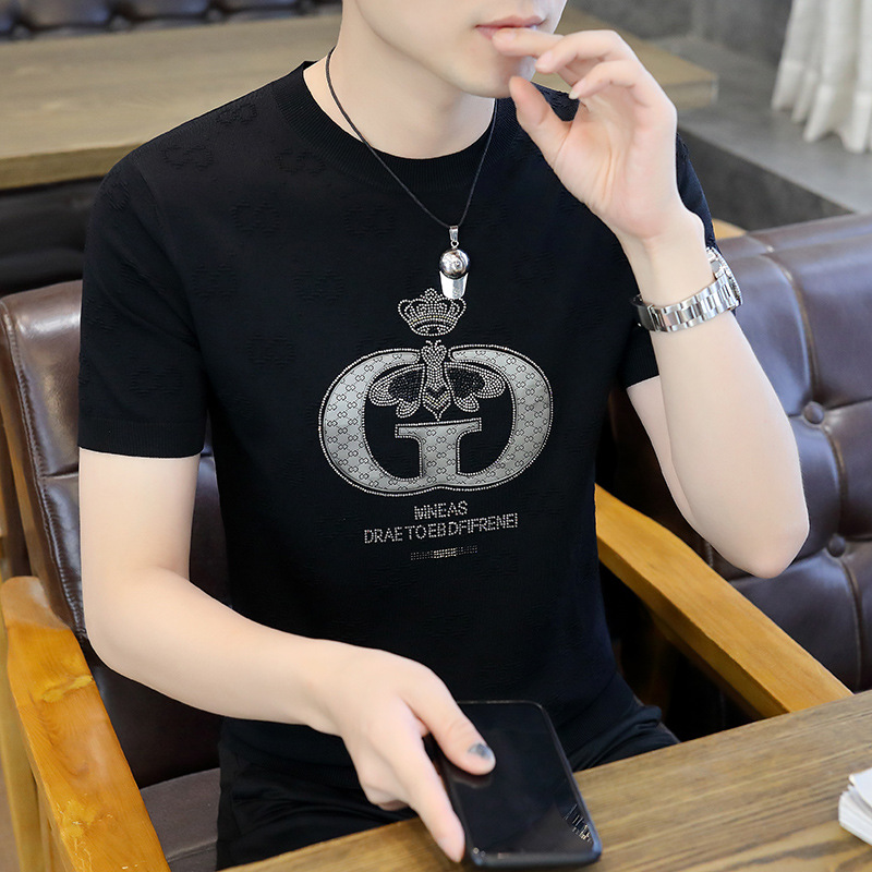 틱톡 인기 상품 니트 아이스 실크 반팔 남성 여름 2026 신상 트렌디 브랜드 슬림핏 고급 라운드넥 티셔츠 재고 있음
