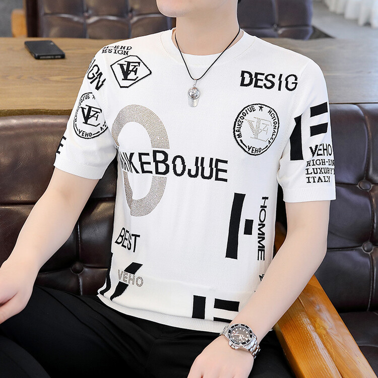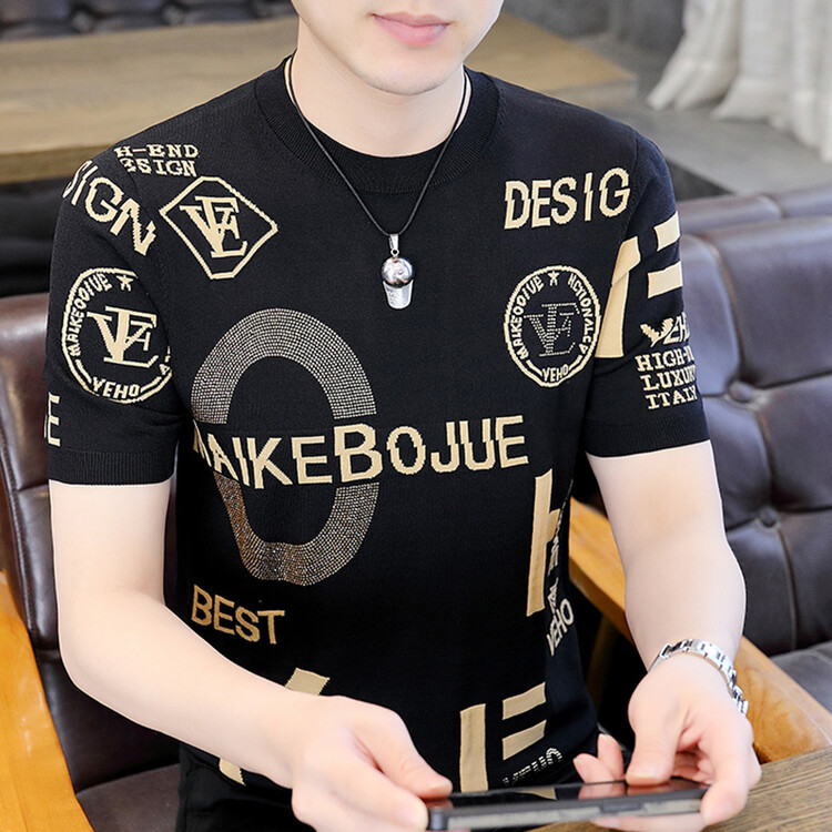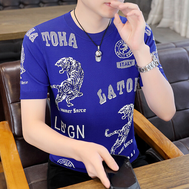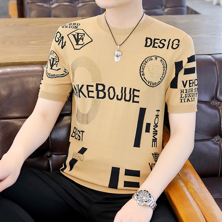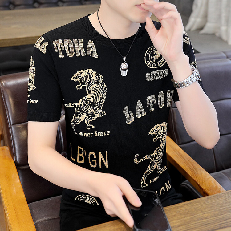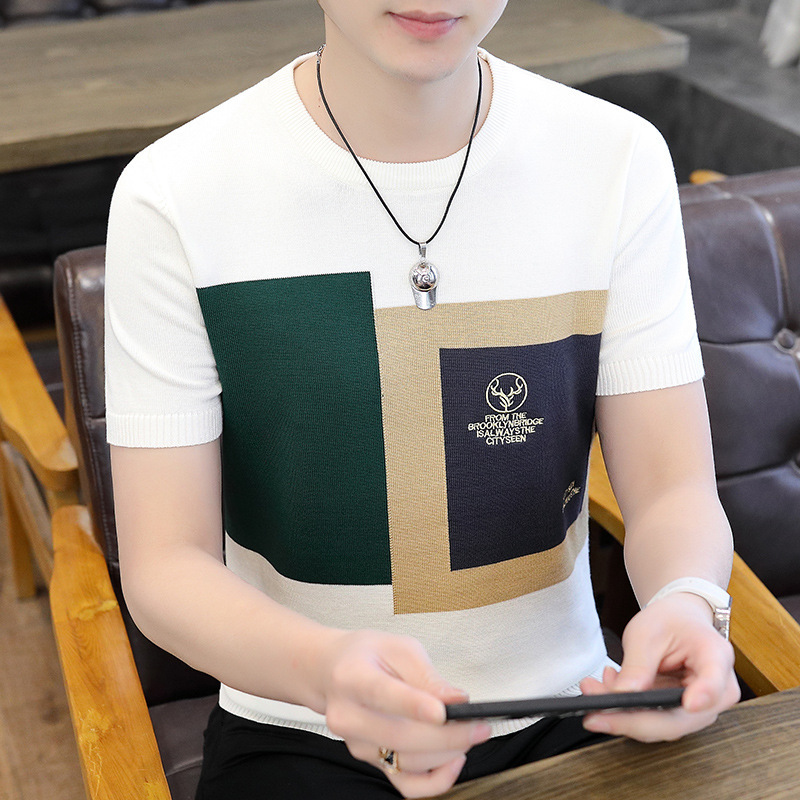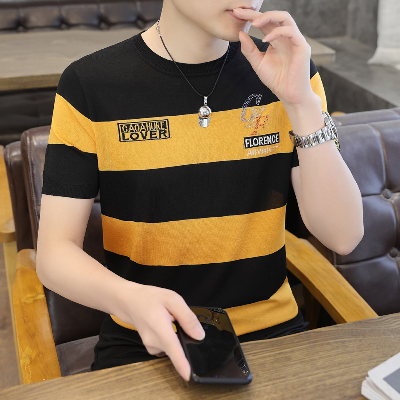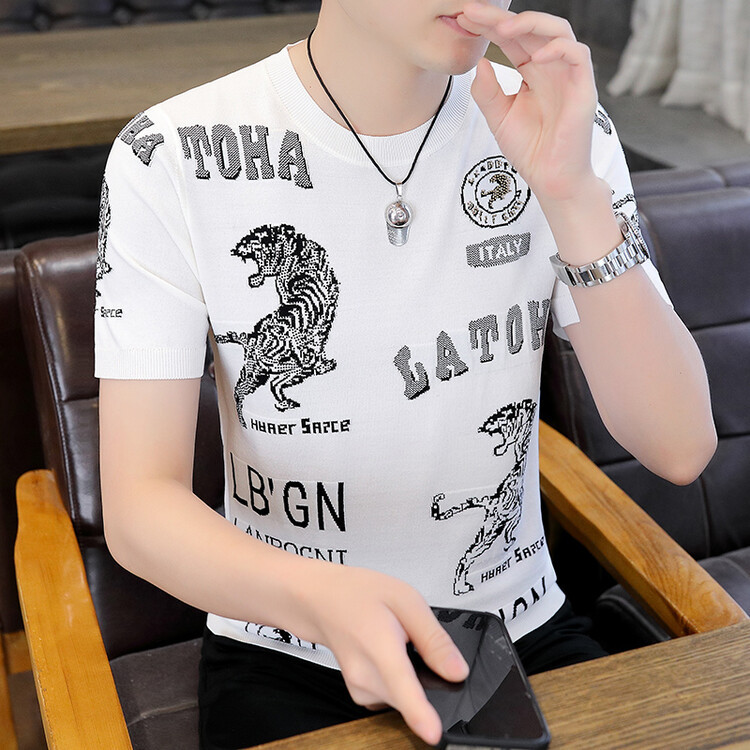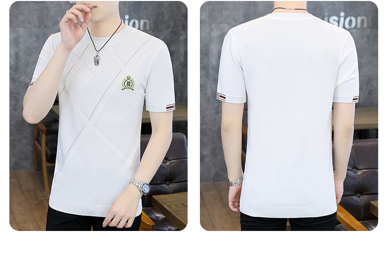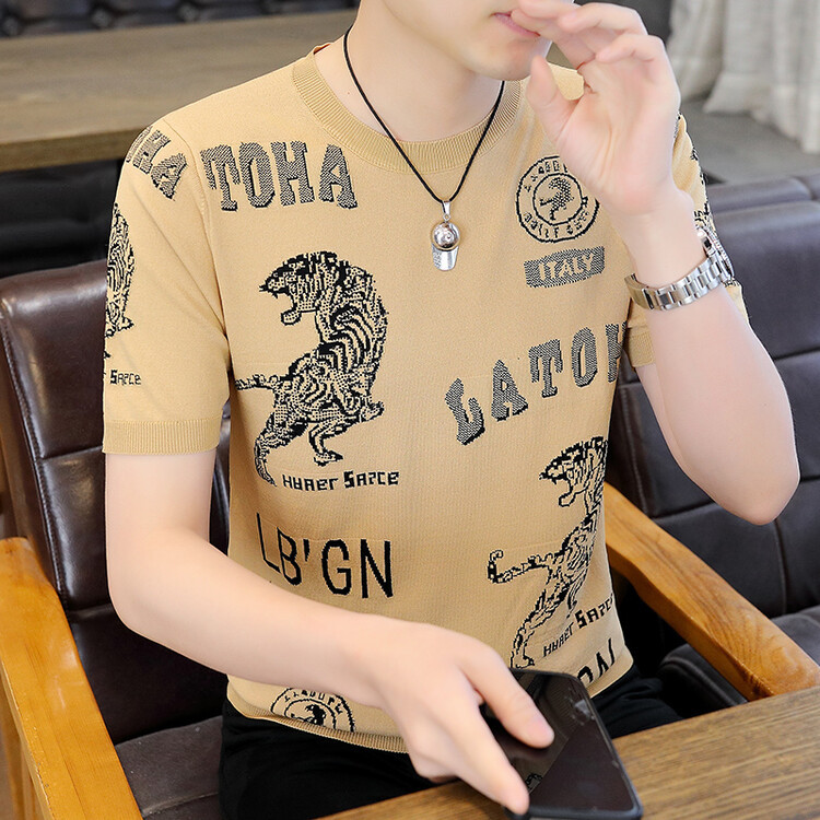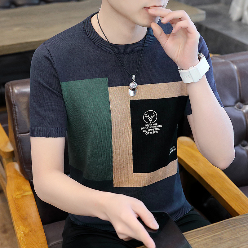 틱톡 인기 상품 니트 아이스 실크 반팔 남성 여름 2026 신상 트렌디 브랜드 슬림핏 고급 라운드넥 티셔츠 재고 있음