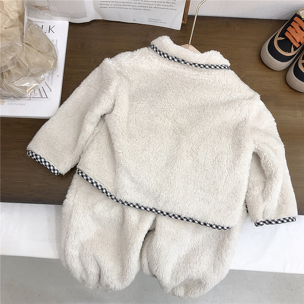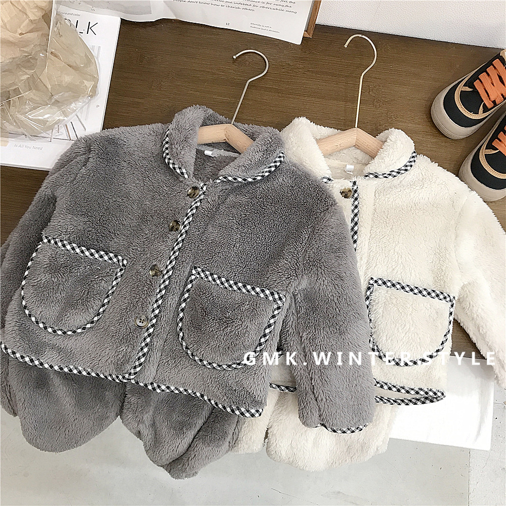 어린이 겨울 가정 의류 소년과 소녀 부드러운 왁스 피부 친화적 인 양면 플란넬 커버 잠옷 2 종 세트 세트 대외 무역스토어 가기