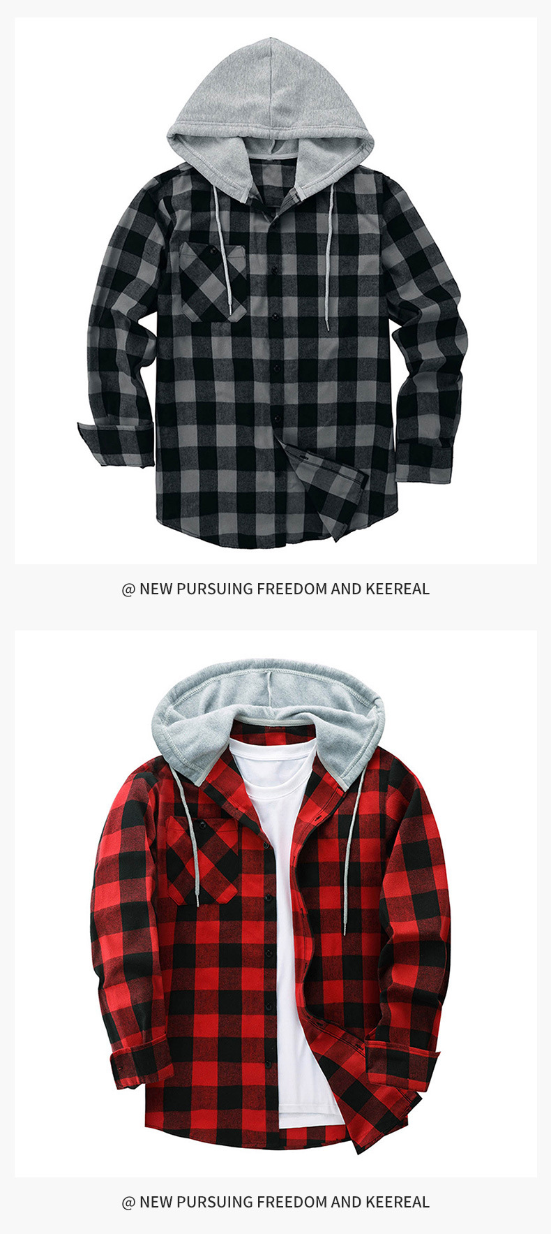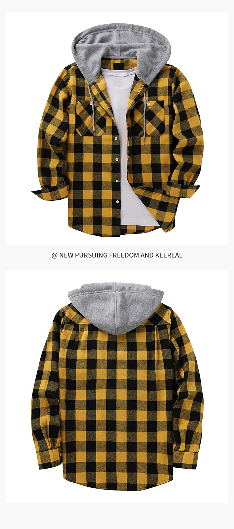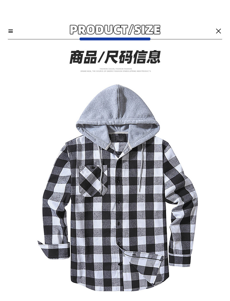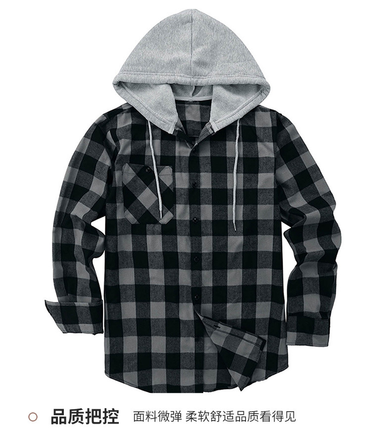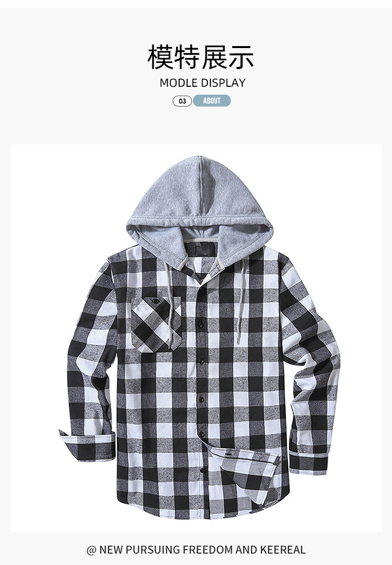 크로스 보더 후드 체크 셔츠 남자의 2023 대외 무역 가을 하라주쿠 스타일 격자 무늬 후드 셔츠 남성 캐주얼 셔츠스토어 가기