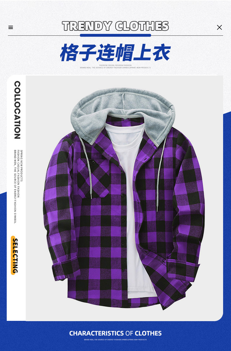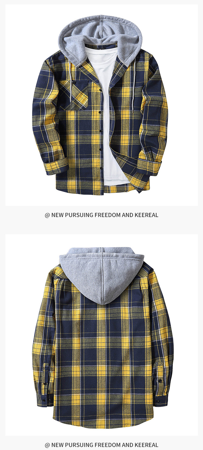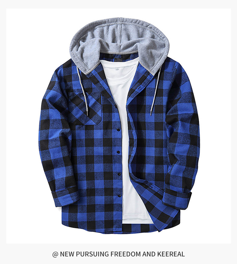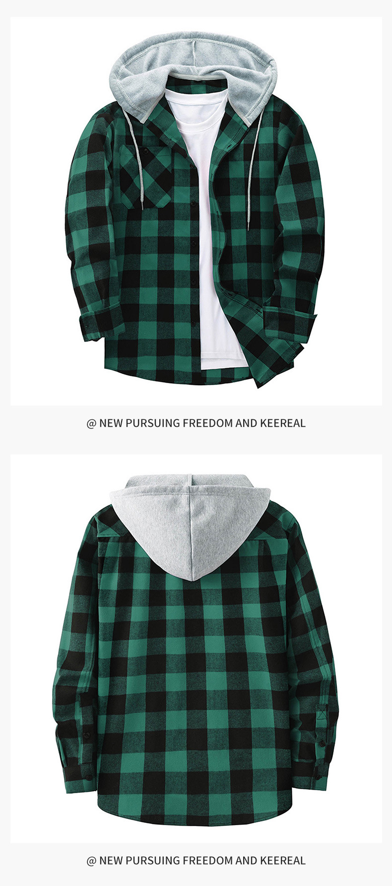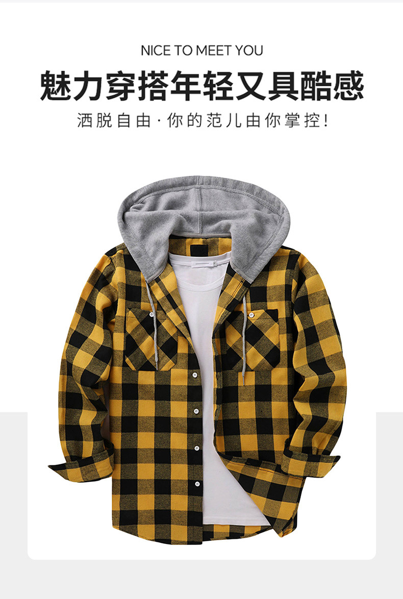 크로스 보더 후드 체크 셔츠 남자의 2023 대외 무역 가을 하라주쿠 스타일 격자 무늬 후드 셔츠 남성 캐주얼 셔츠스토어 가기