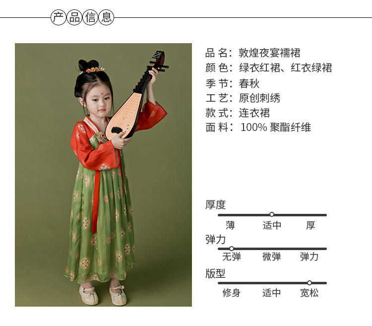 女.童汉服秋中国风复古儒裙超仙连衣裙喜庆女宝敦煌风演出服