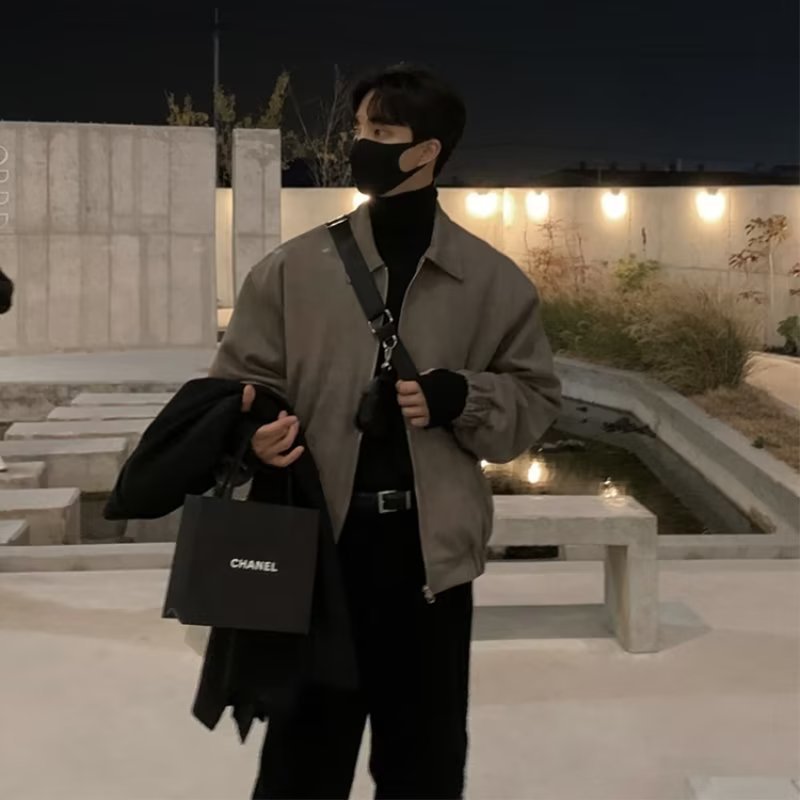 스웨이드 한국 스타일 봄 가을 재킷 남성용 멋진 하이 스트리트 재킷 가을 스타일 패션 트렌드 의류스토어 가기