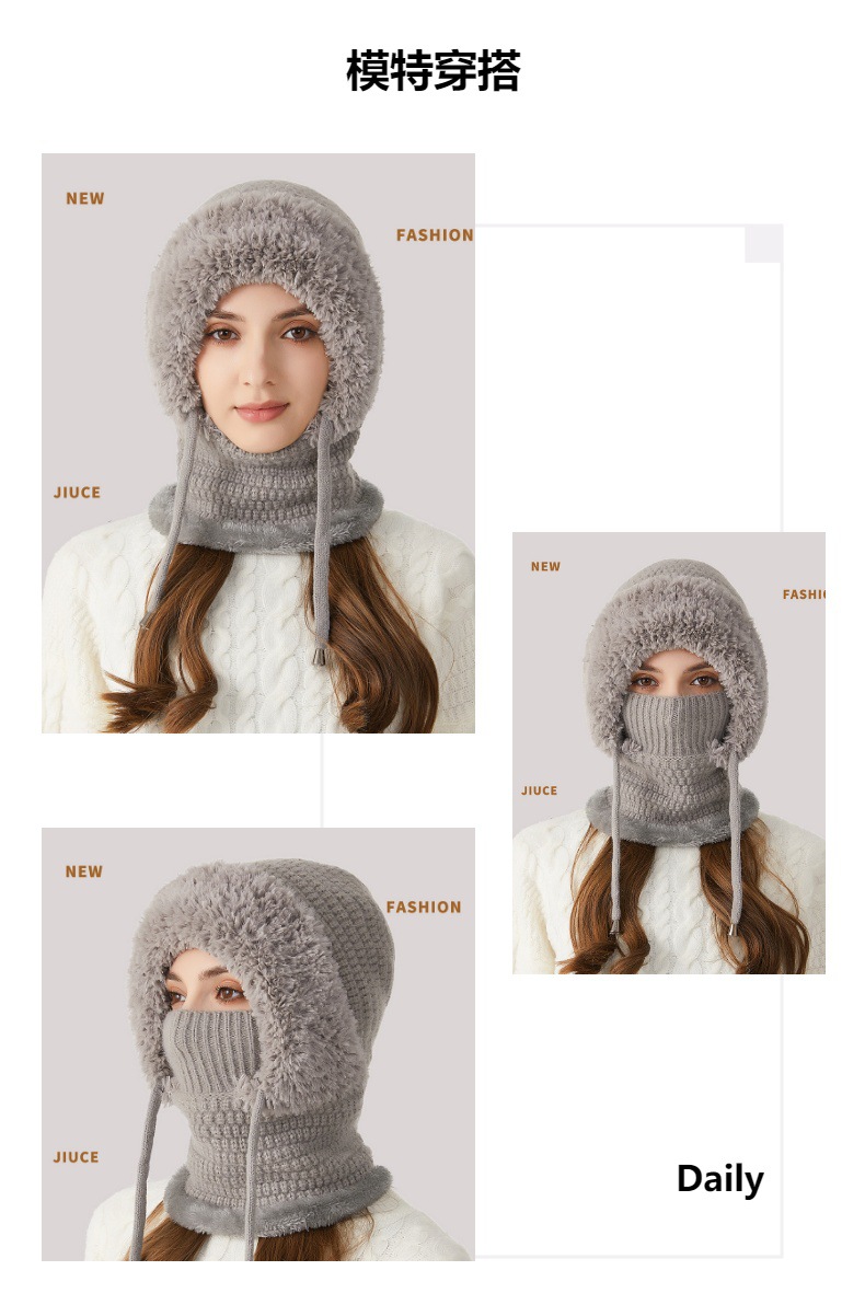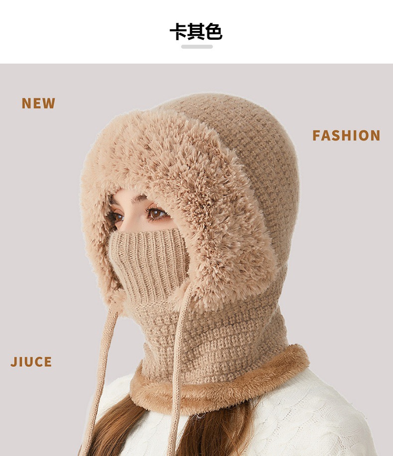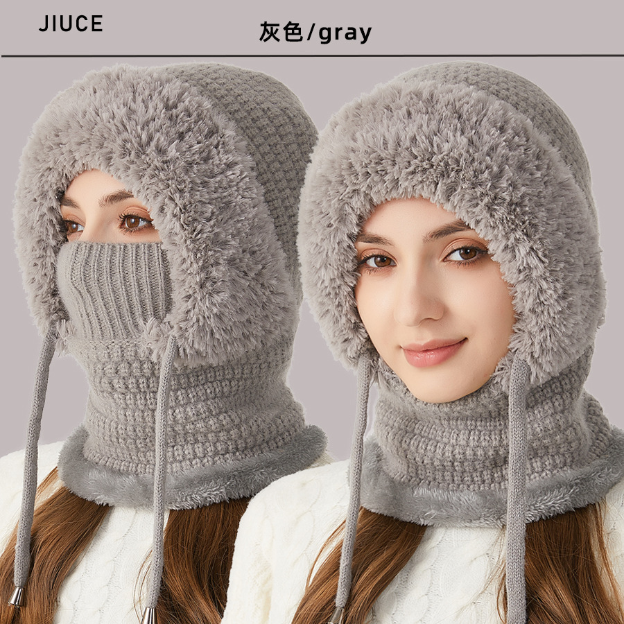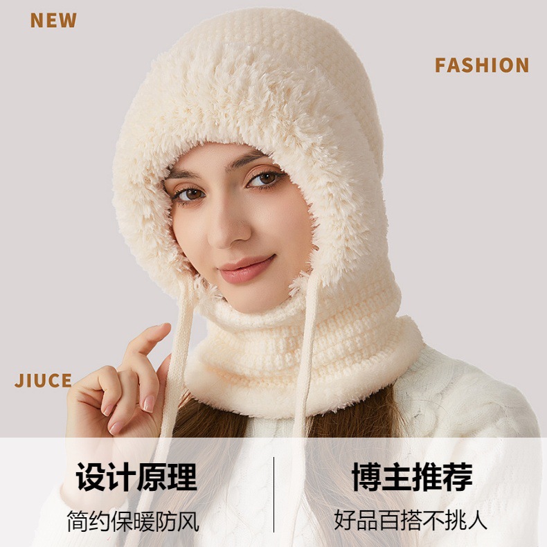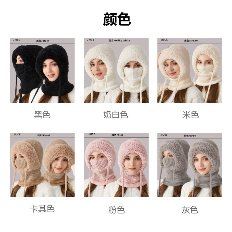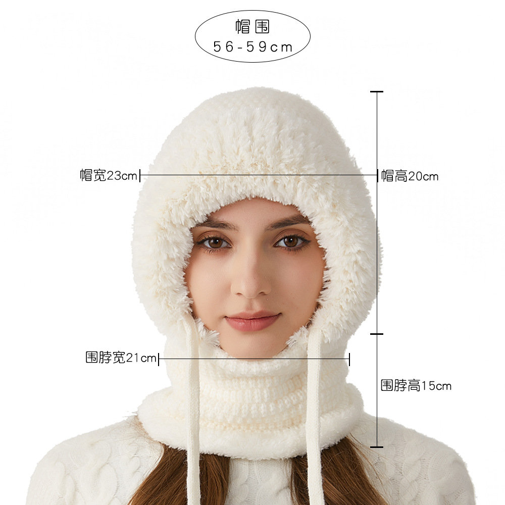 원피스 모자에 적합한 크로스 보더 빅 헤드 여성용 겨울 기모 두꺼운 얼굴 덮음 니트 모자 스카프 마스크 따뜻한 키트