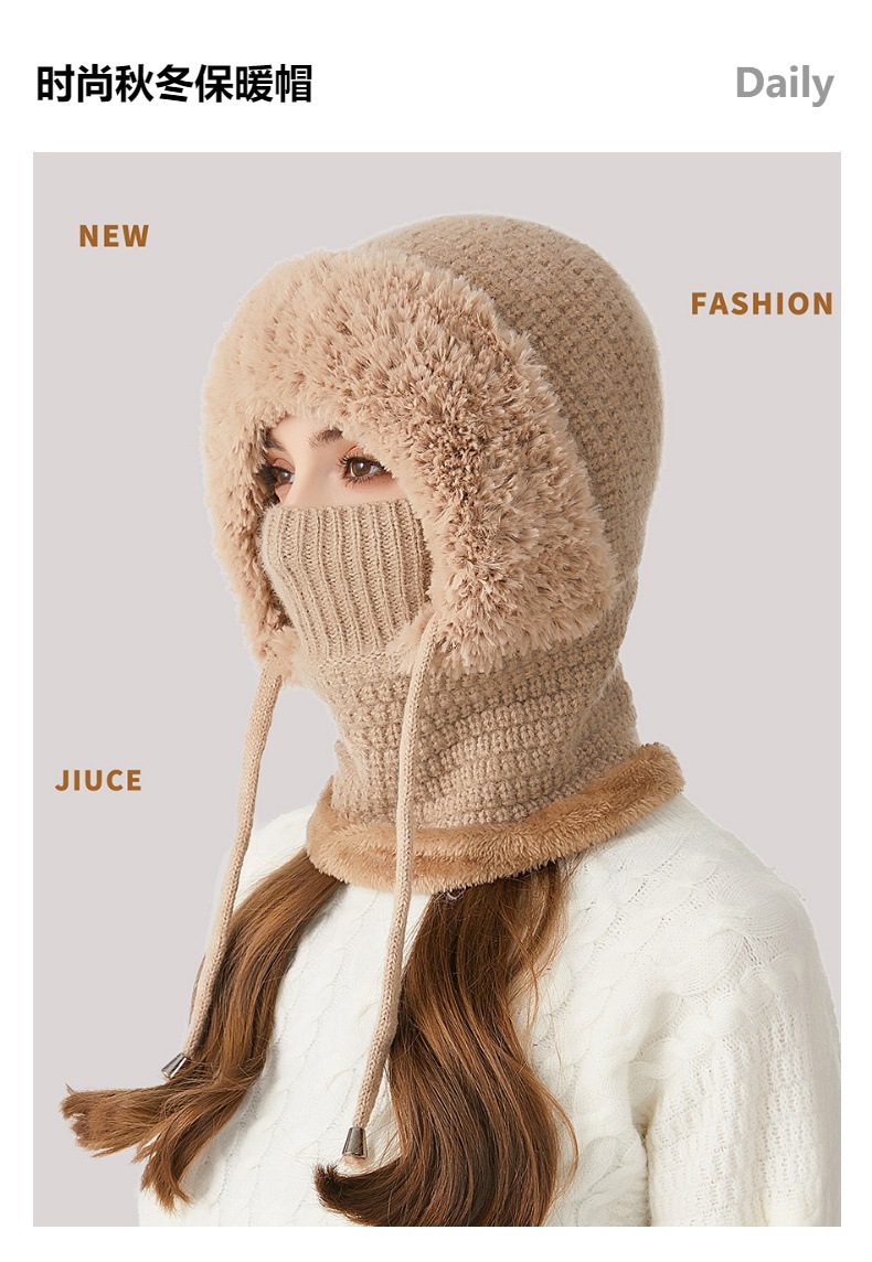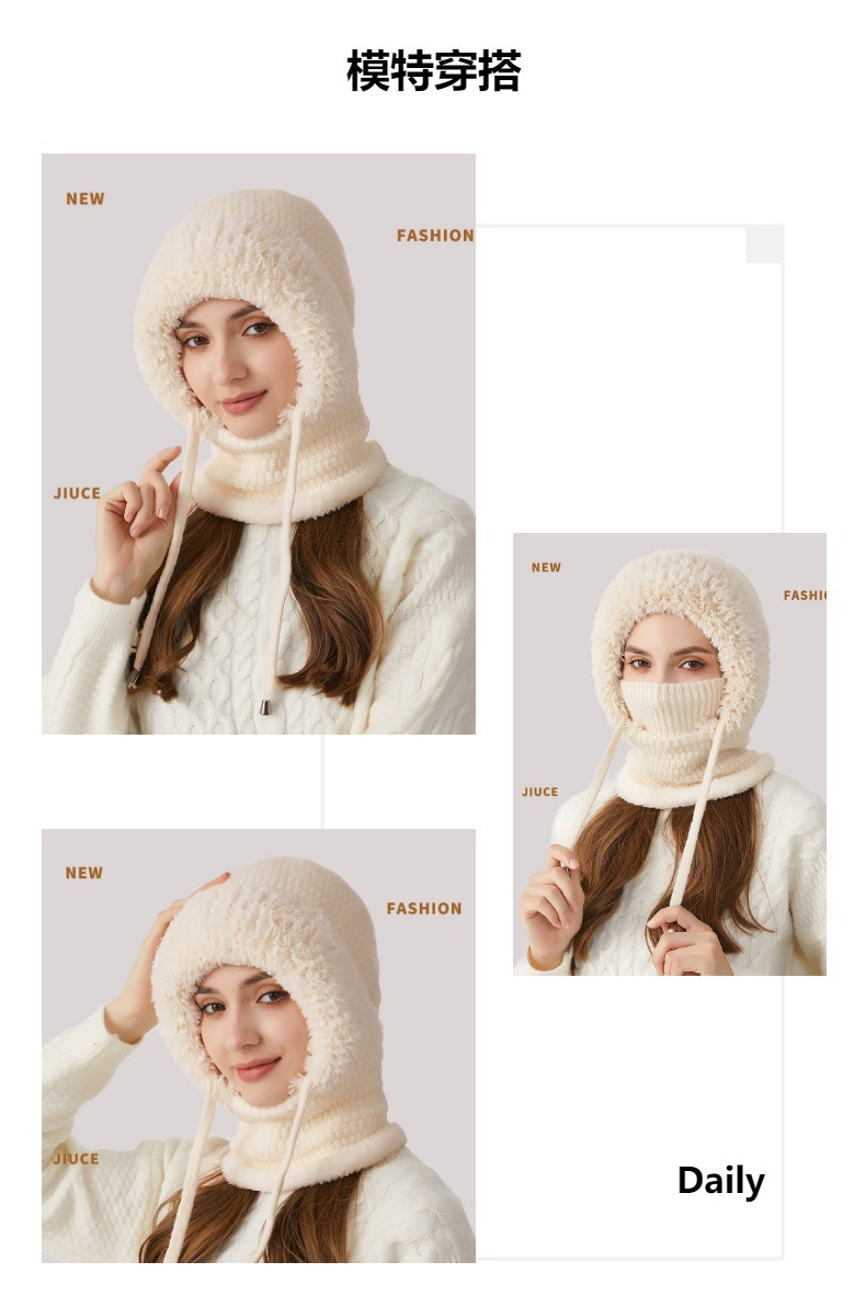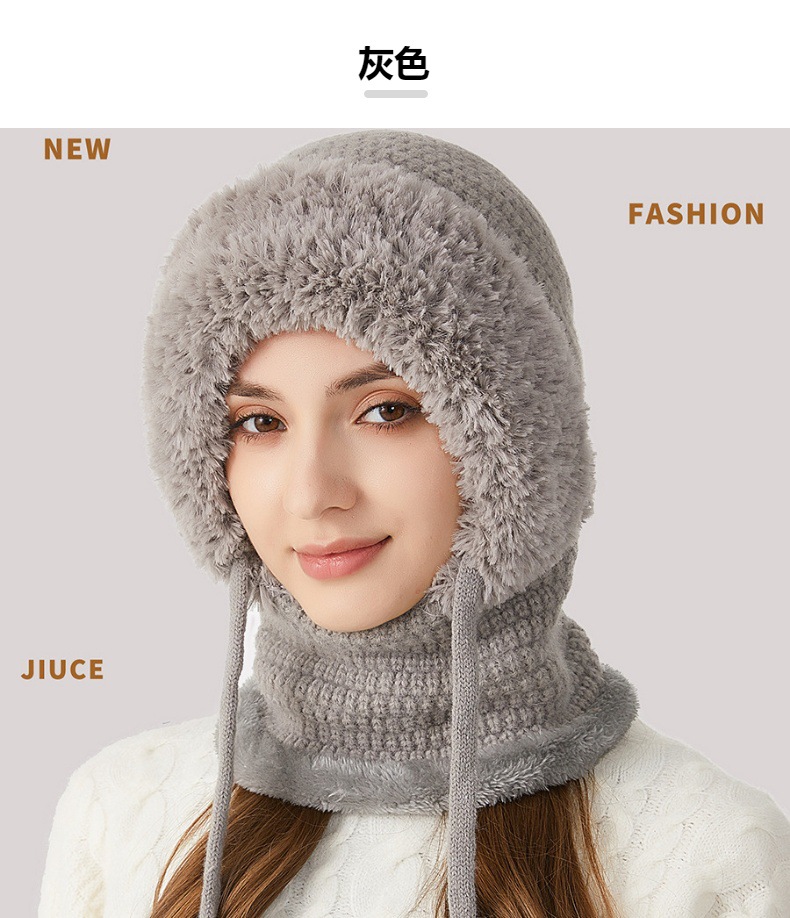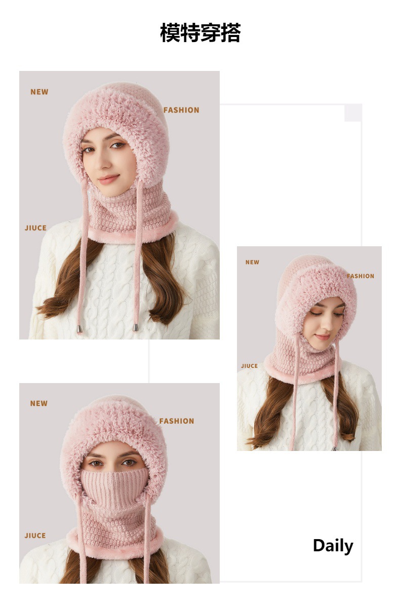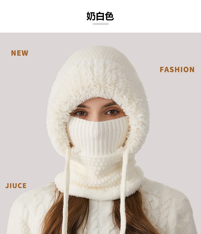 원피스 모자에 적합한 크로스 보더 빅 헤드 여성용 겨울 기모 두꺼운 얼굴 덮음 니트 모자 스카프 마스크 따뜻한 키트