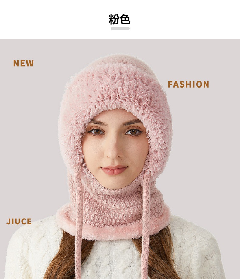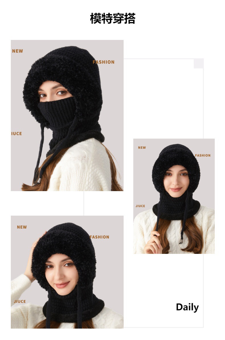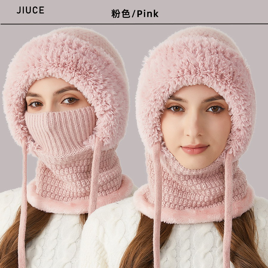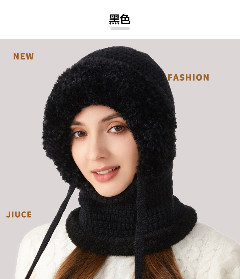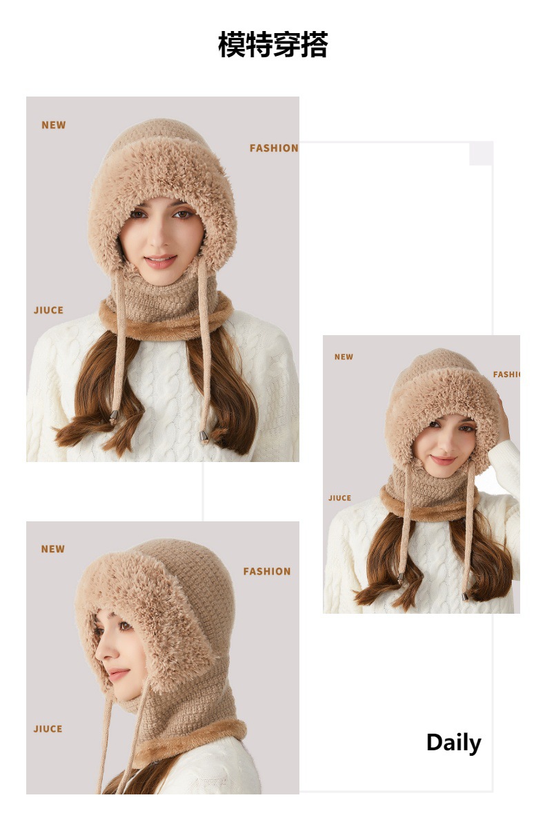 원피스 모자에 적합한 크로스 보더 빅 헤드 여성용 겨울 기모 두꺼운 얼굴 덮음 니트 모자 스카프 마스크 따뜻한 키트