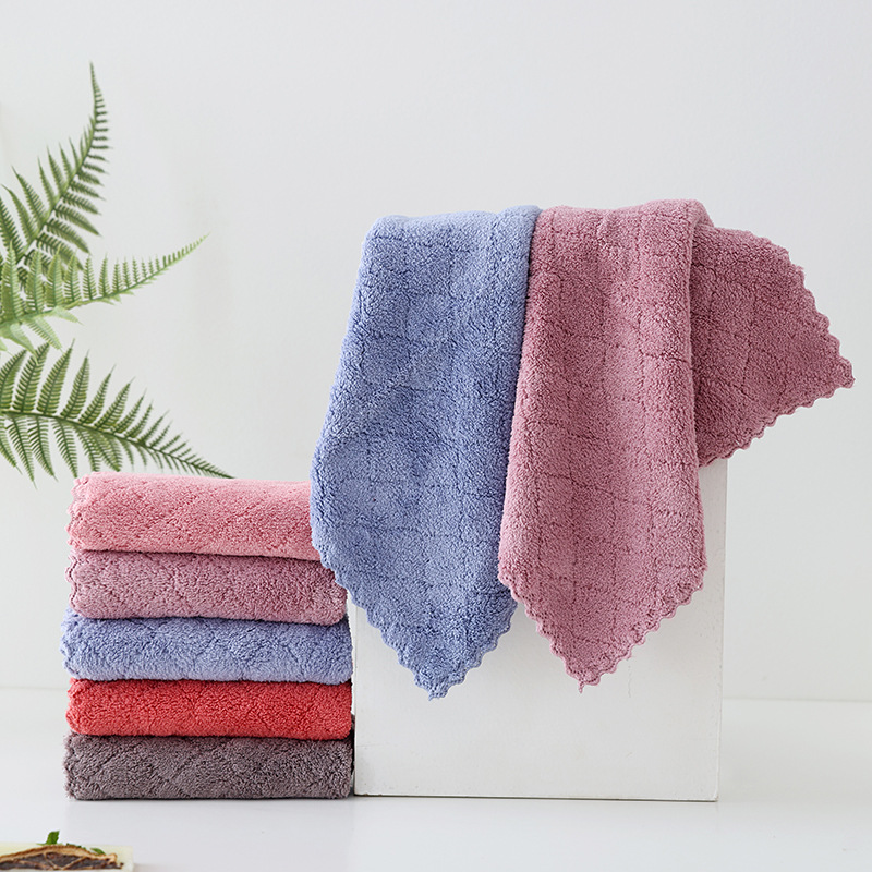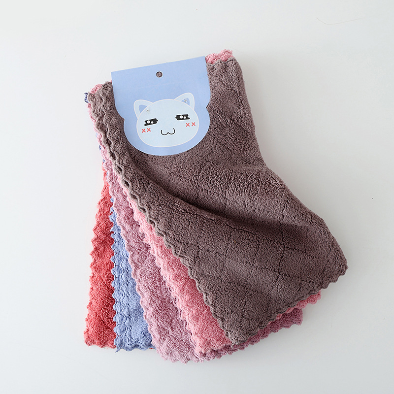 두꺼운 물 흡수성 속건 핸드 타올 주방 테이블 닦아 천 날실 니트 산호 양털 작은 수건 사각 수건