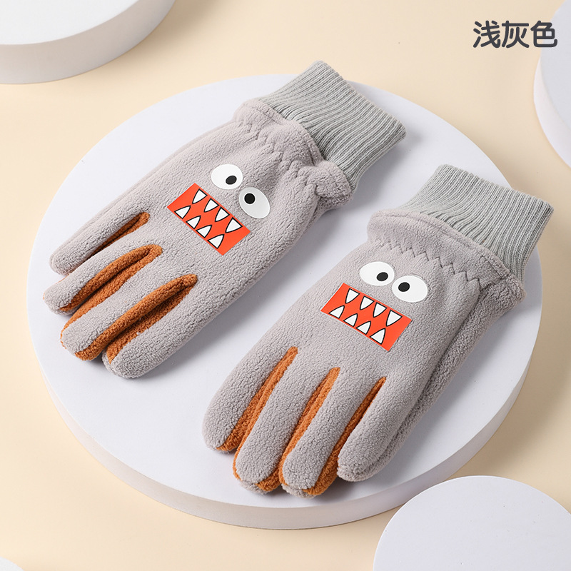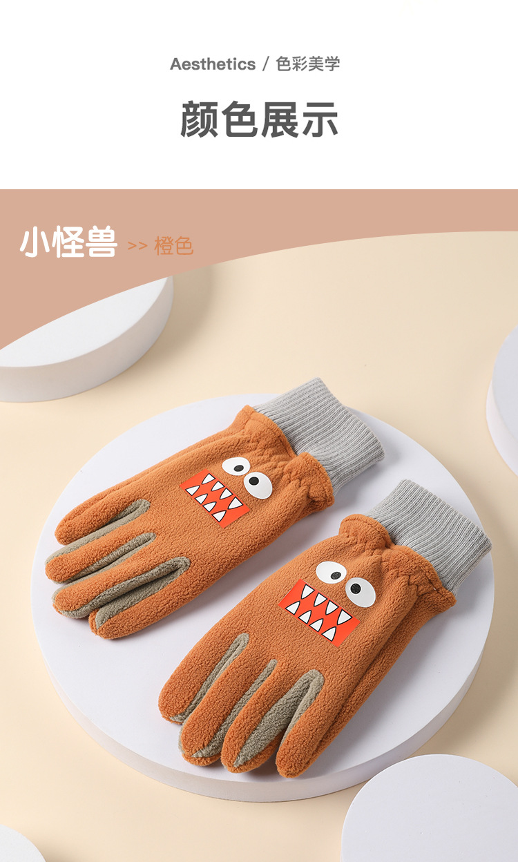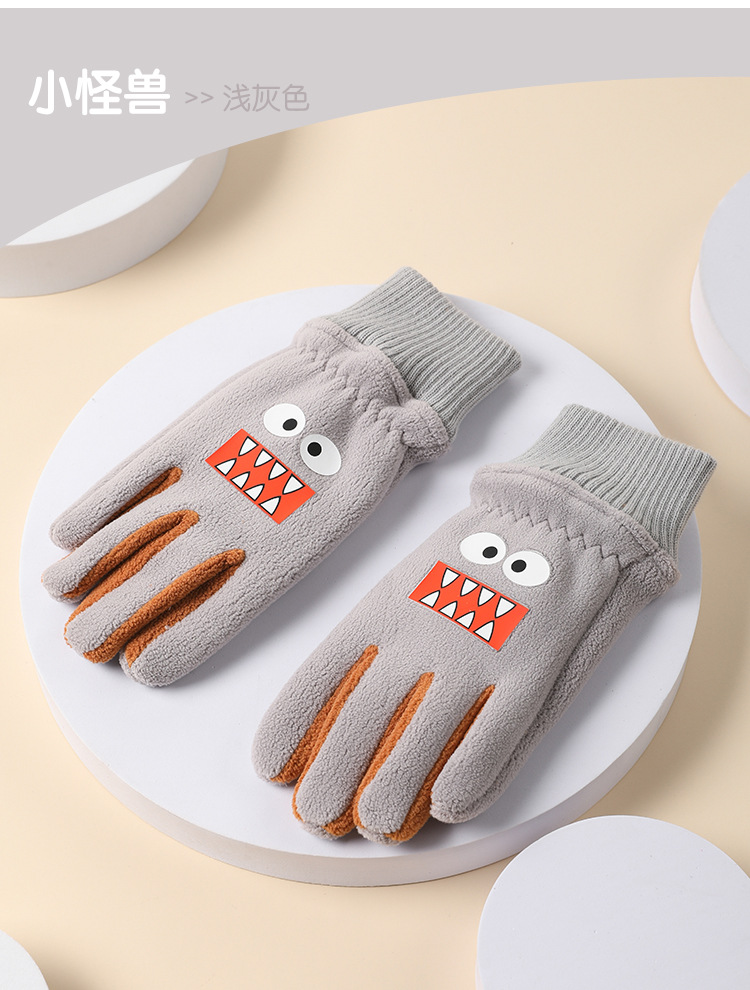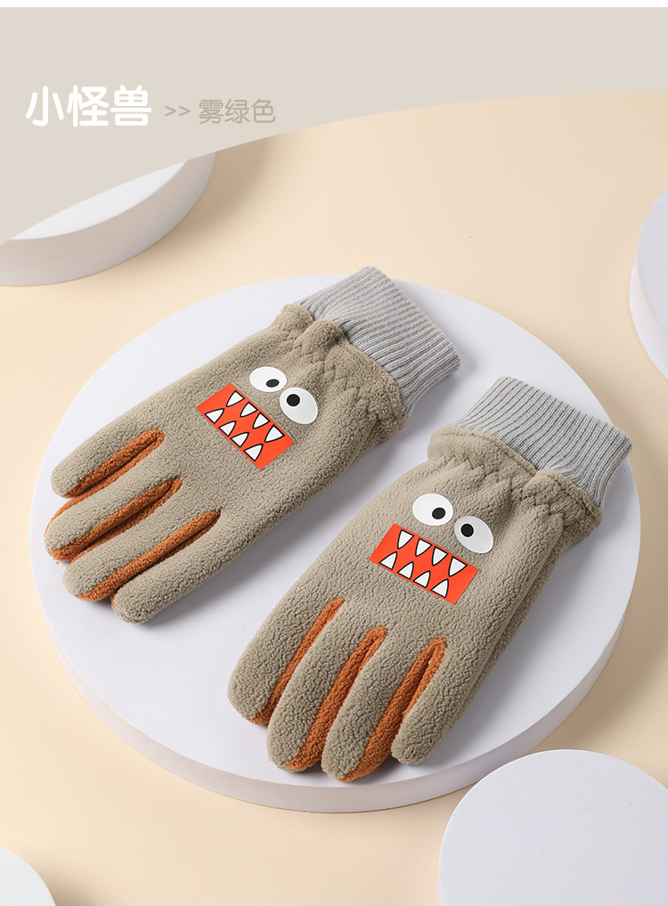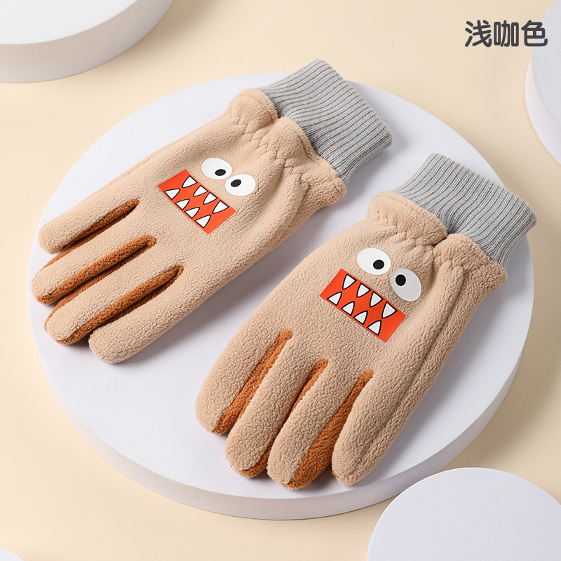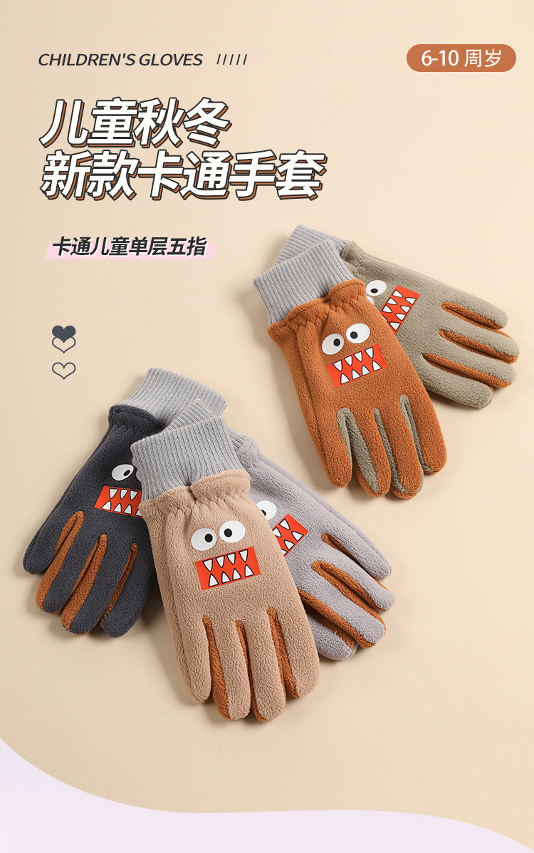 6-10 가을과 겨울 새로운 어린이 따뜻한 장갑 귀여운 소녀 방풍 방한 야외 사이클링 기모 장갑 소년