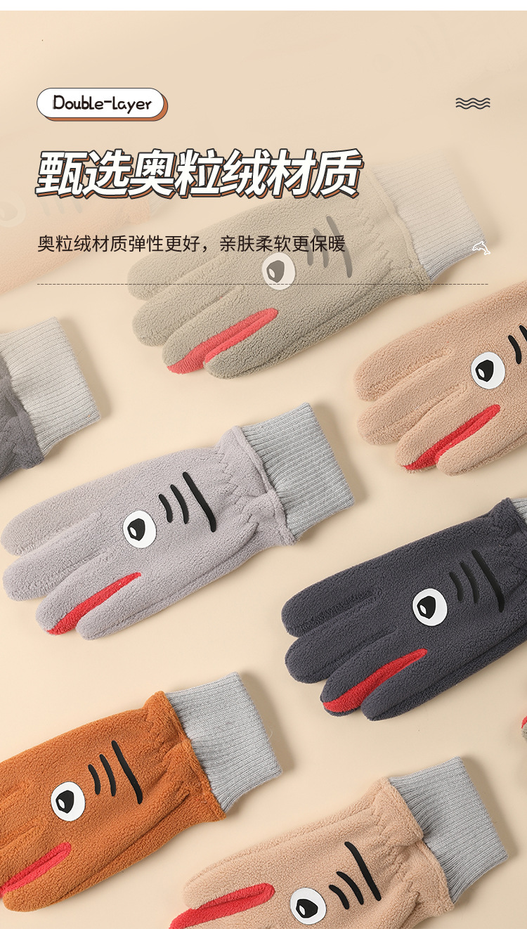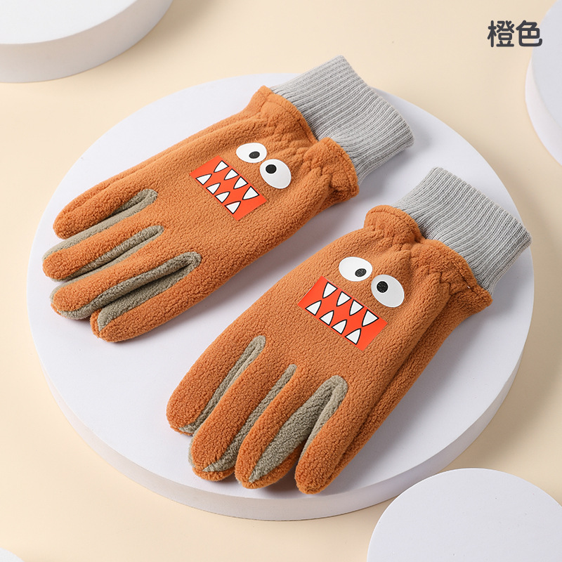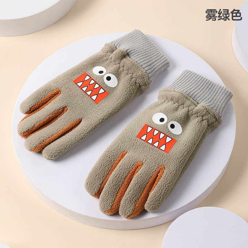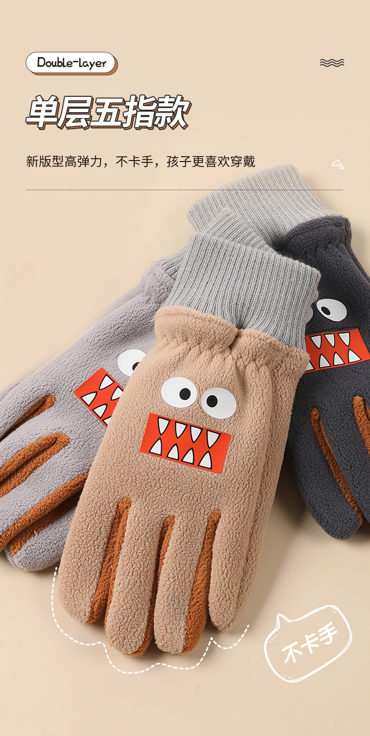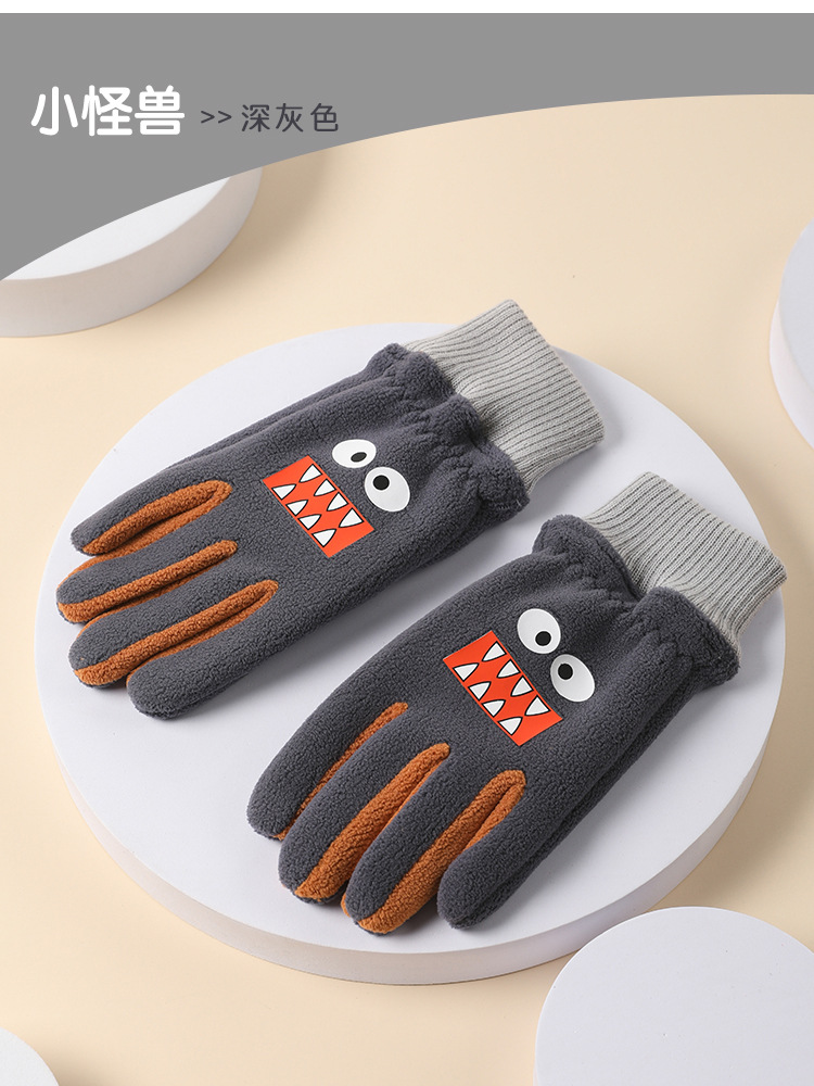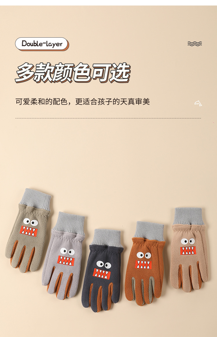 6-10 가을과 겨울 새로운 어린이 따뜻한 장갑 귀여운 소녀 방풍 방한 야외 사이클링 기모 장갑 소년