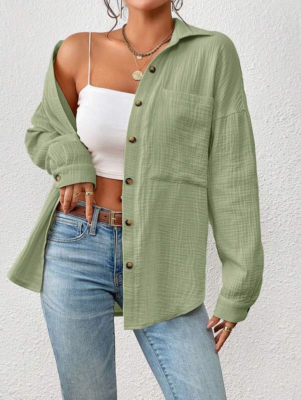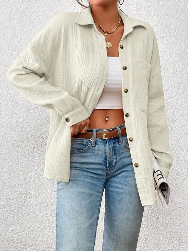 여성용 가을 2023 새로운 고급 유럽 및 미국 아마존 크로스 보더 여성용 셔츠 숄더 드롭 배트 셔츠 긴팔 셔츠