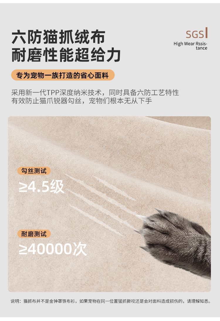 크림 스타일 현대 간단한 구름 방지 고양이 스크래치 소파 작은 아파트 거실 4 인용 코끼리 귀 양털 소파