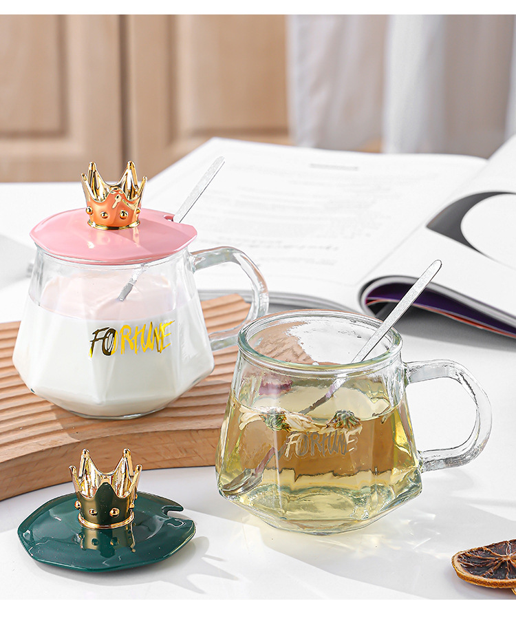 크라운 밀크컵 커피컵 유리 물컵 학생용 한국 스타일 커플용 방열컵 여성용 창의적인 컵