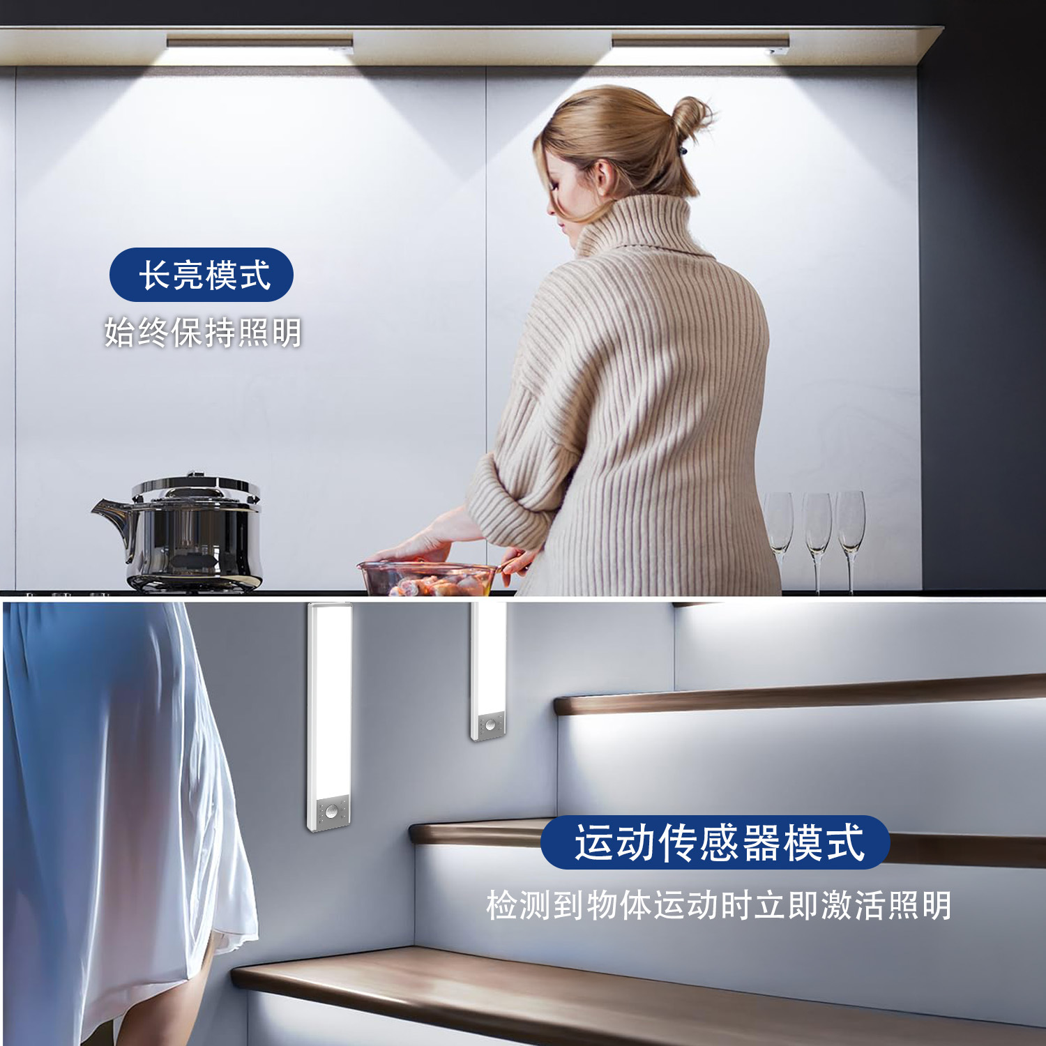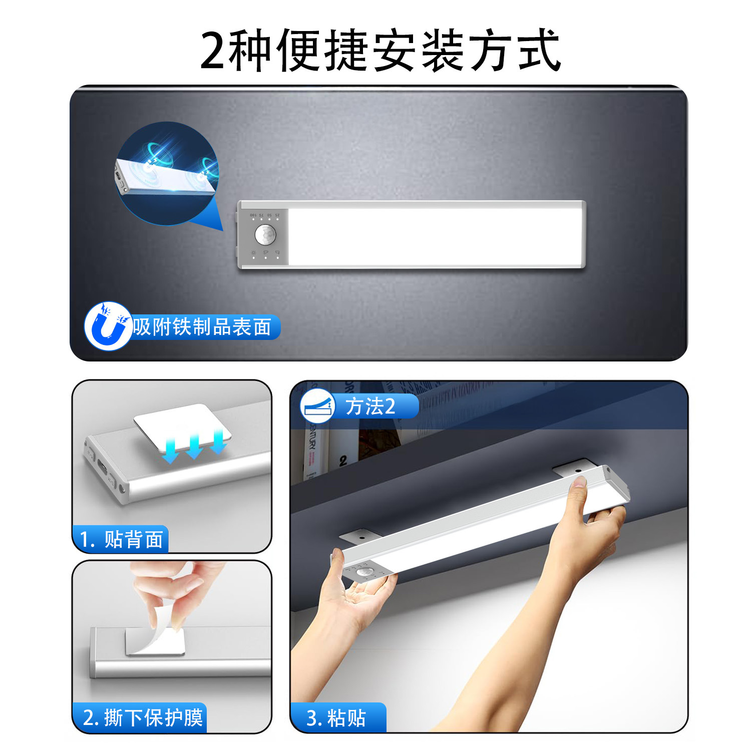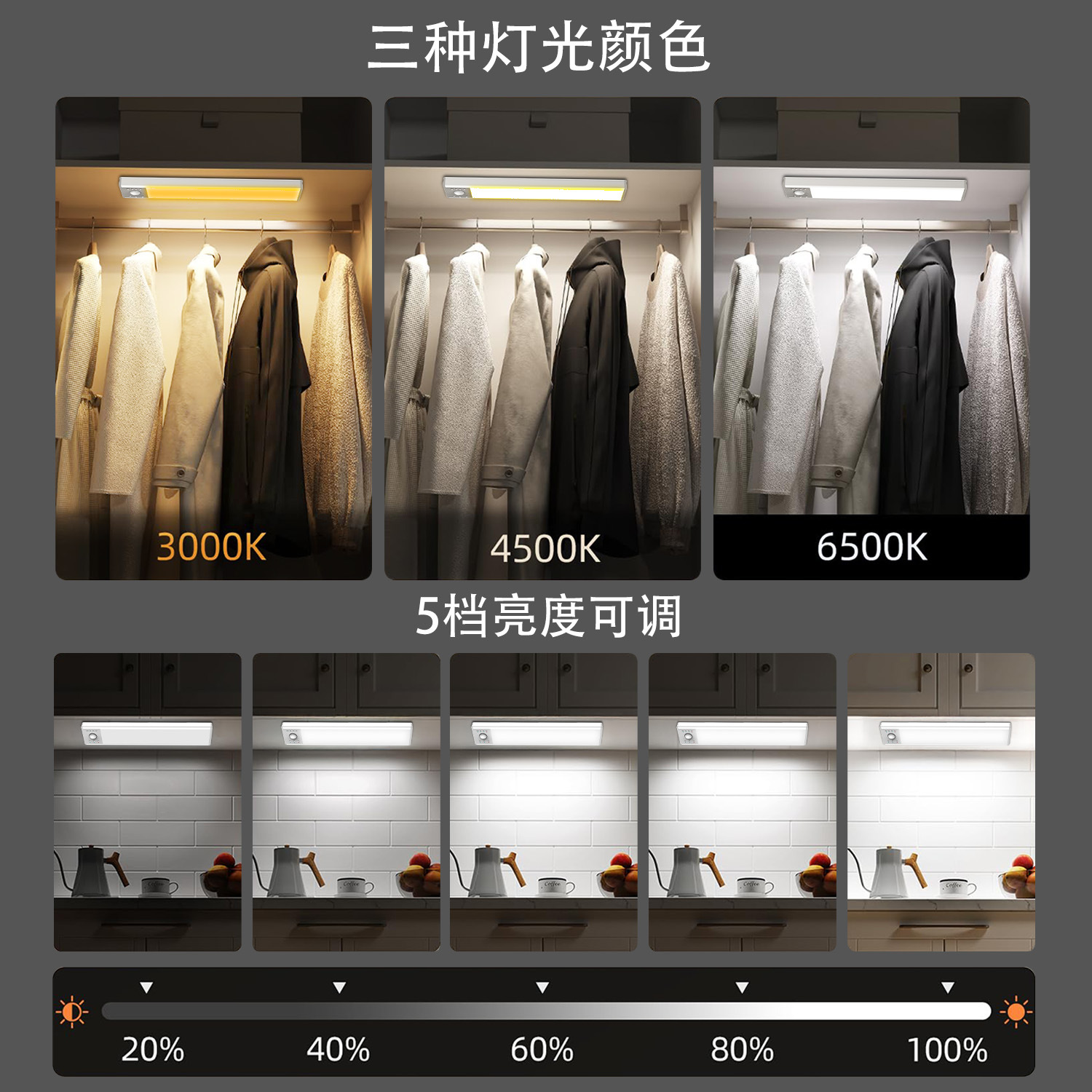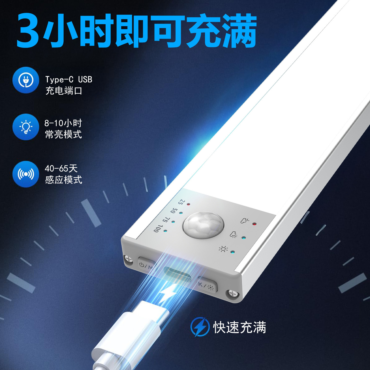 국경을 넘는 스마트 LED 인체감지등, 사람이 오면 켜지는 자석식 USB 충전 캐비닛 센서등, 옷장 야간등