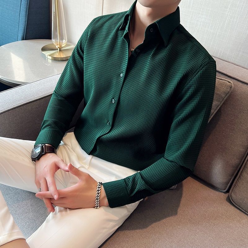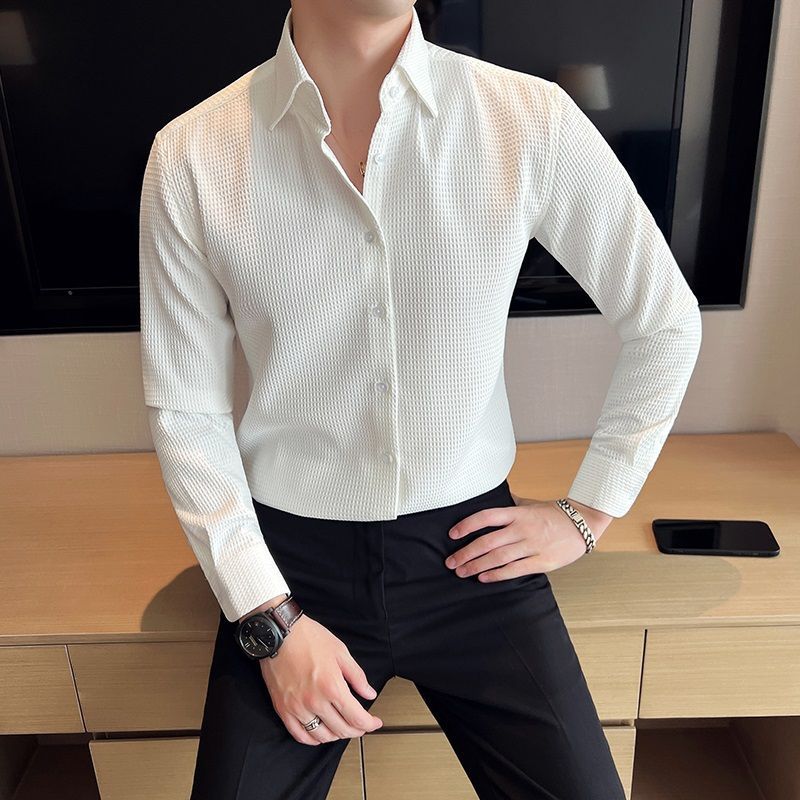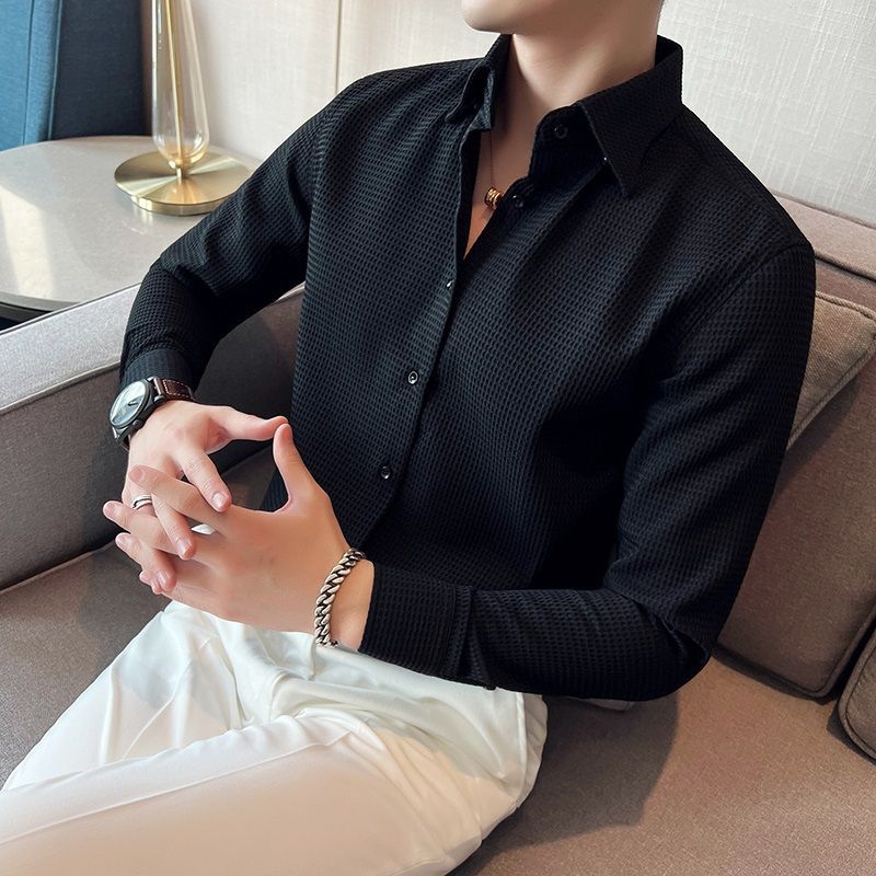 남자 셔츠 긴팔 하이 엔드 센스 새로운 와플 봄과 가을 고급 패션 프랑스 비즈니스 셔츠 남성복스토어 가기