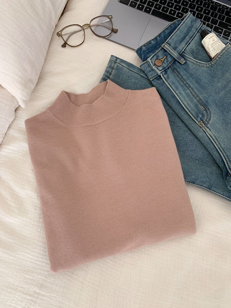GAGD 하프 하이 칼라 베이스 셔츠 여성용 가을과 겨울 내부 스웨터 니트 스웨터 베이직 에디션 겨울 니트 베이스 탑스토어 가기