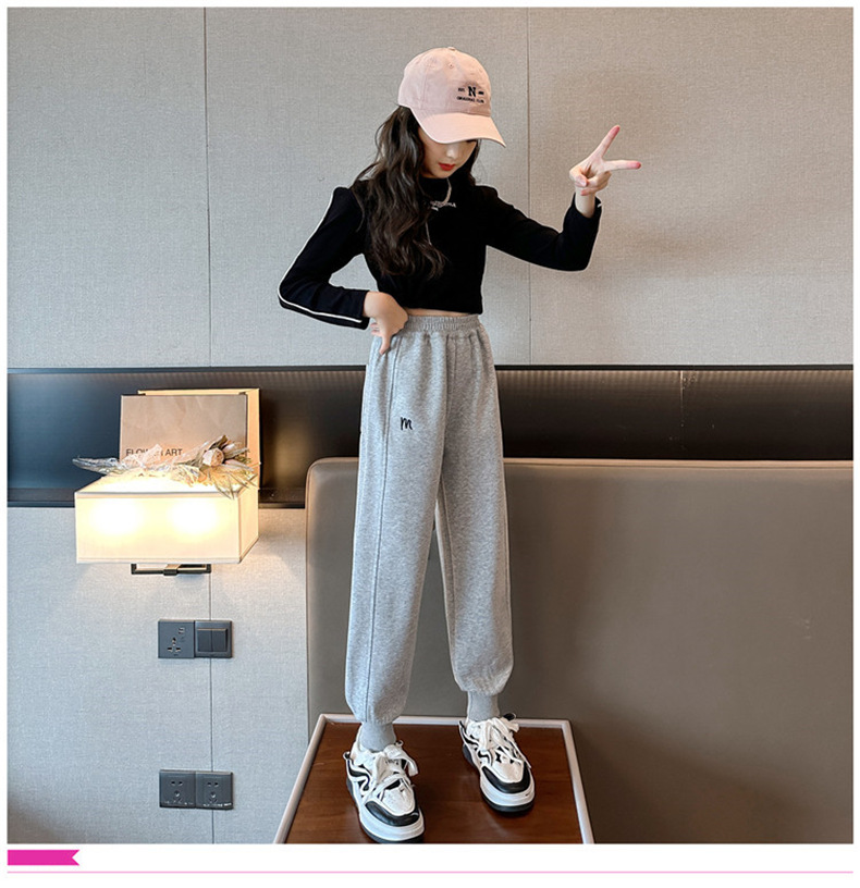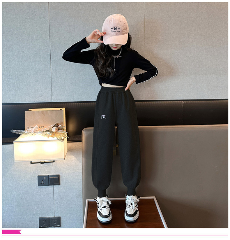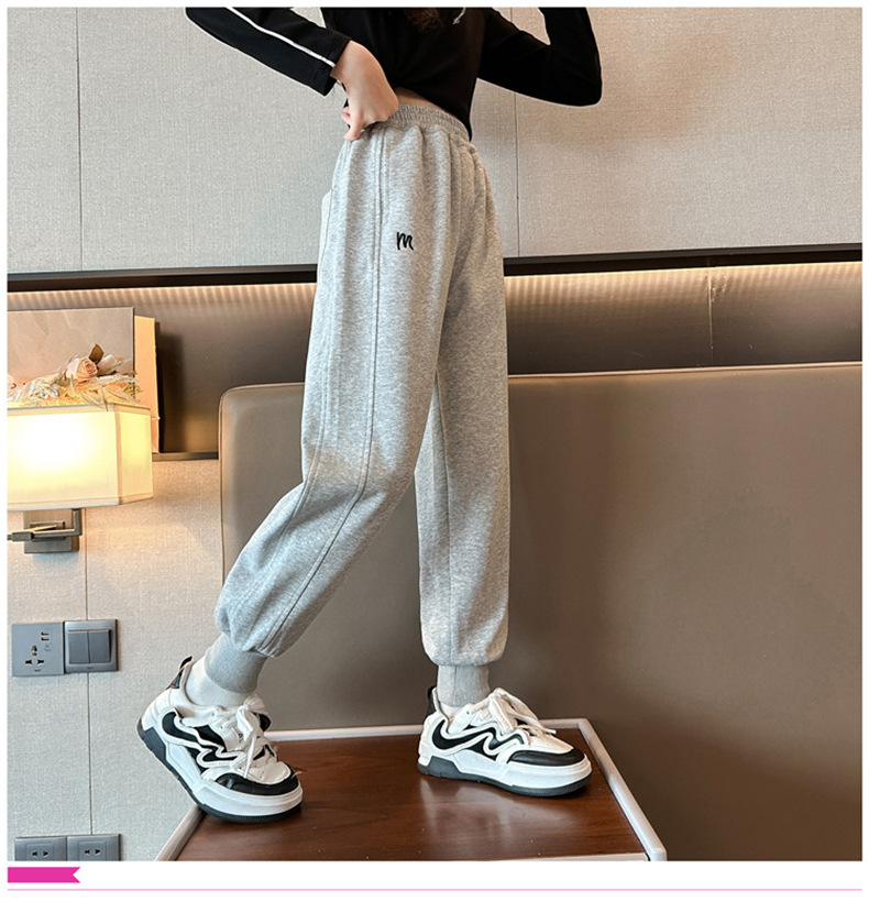 여아 기모 바지 가을과 겨울 2023 새로운 어린이 서양 스타일 느슨한 캐주얼 바지 큰 어린이 겨울 두꺼운 다리 바지