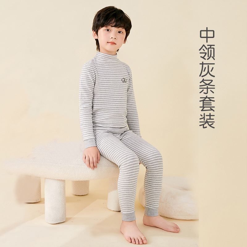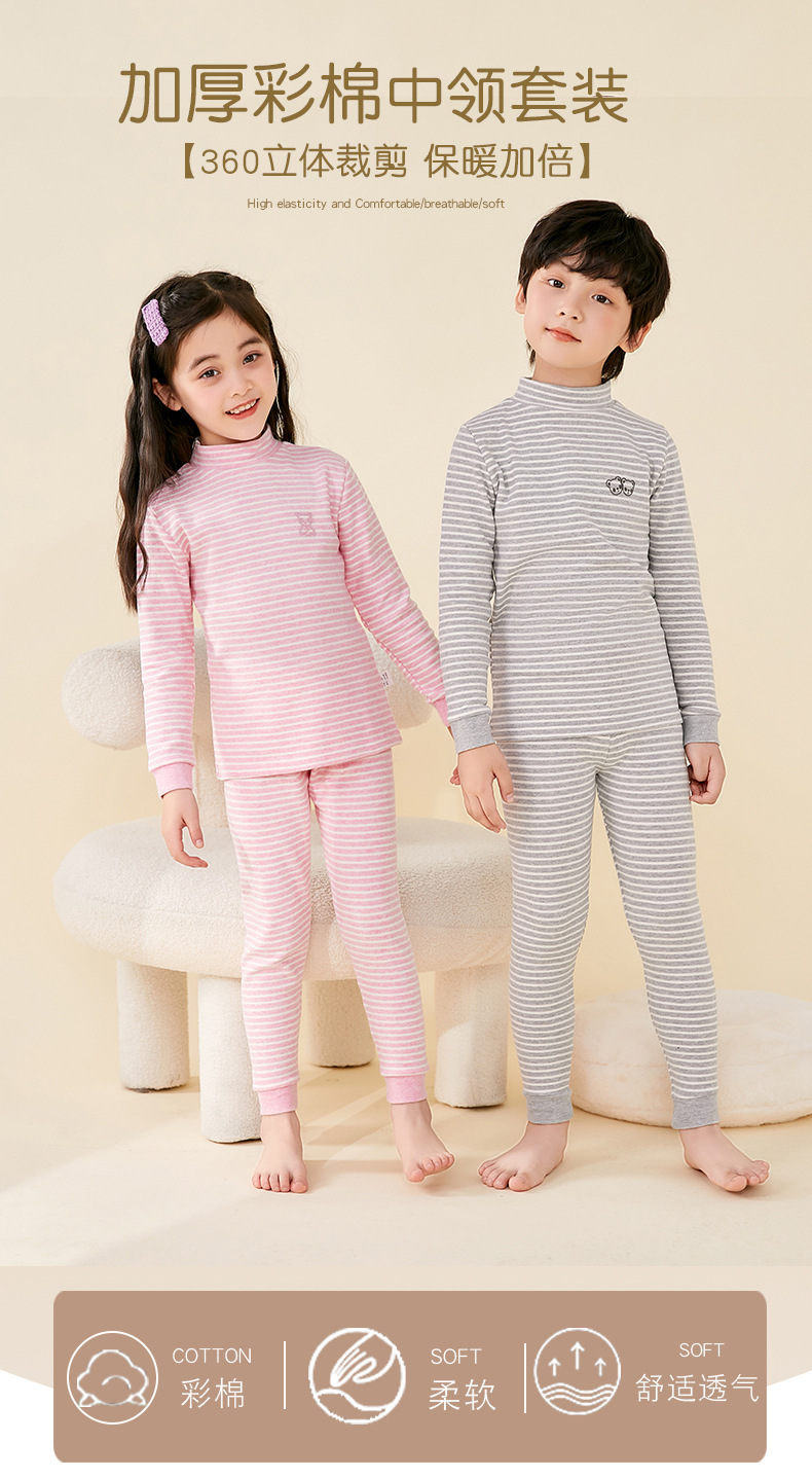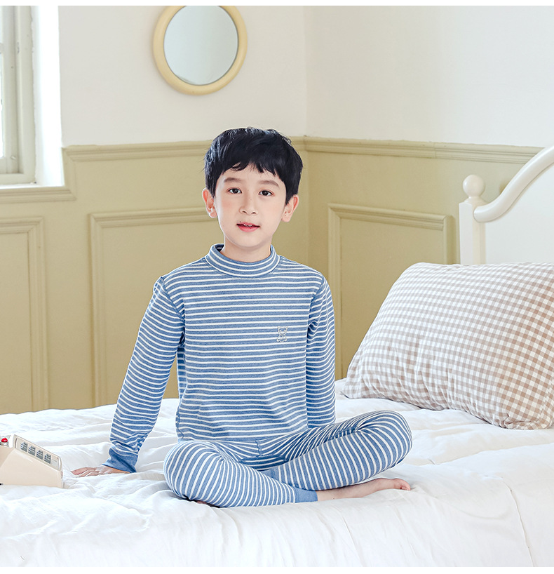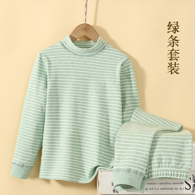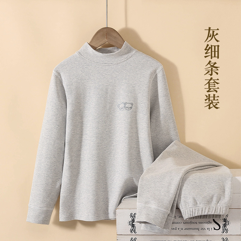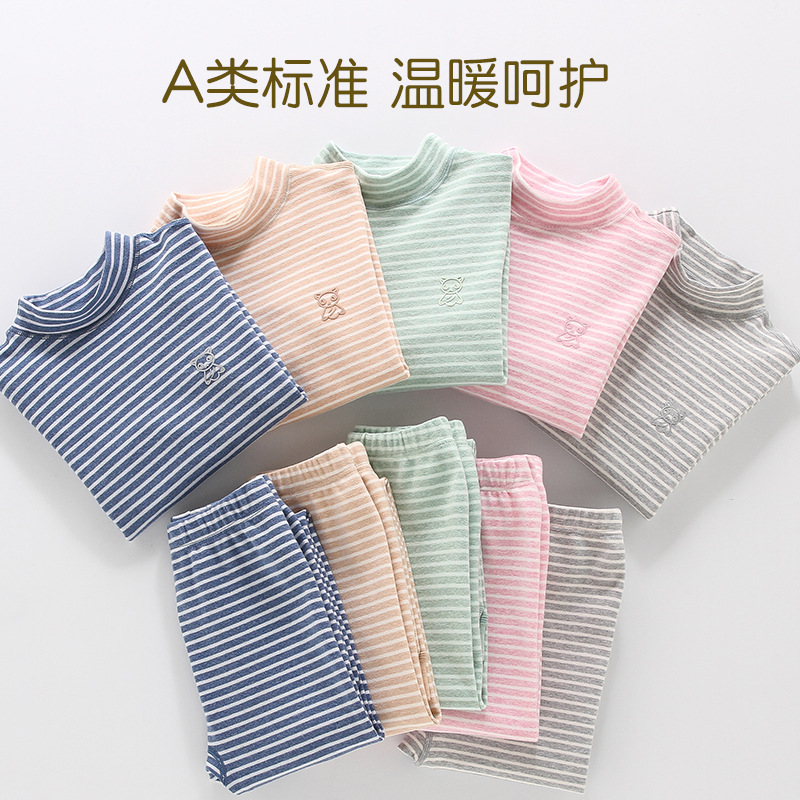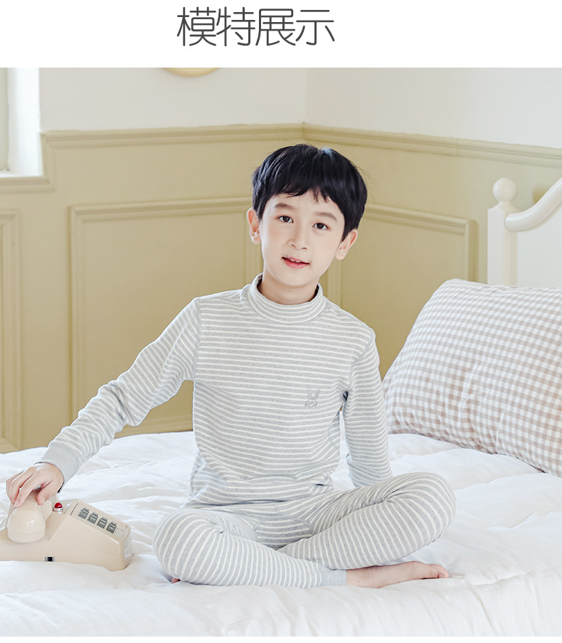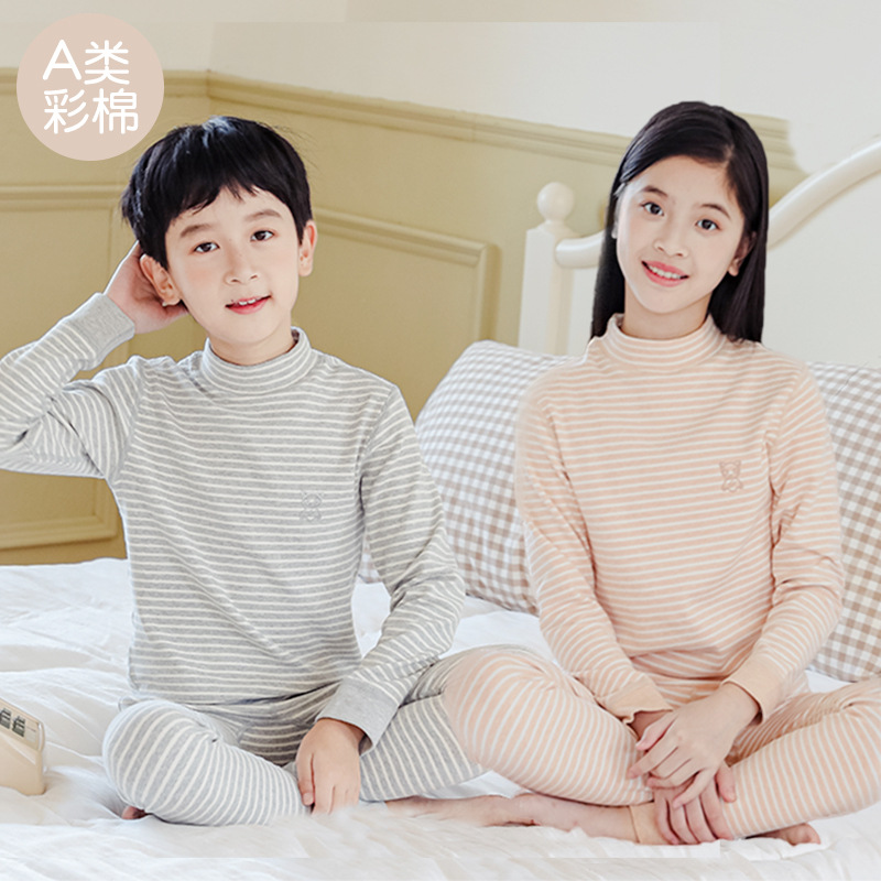 소년의 반 높은 칼라 가을 옷과 가을 바지 큰 어린이와 소녀 스트라이프 세트 유행 어린이 컬러 면 중간 칼라 열 속옷스토어 가기