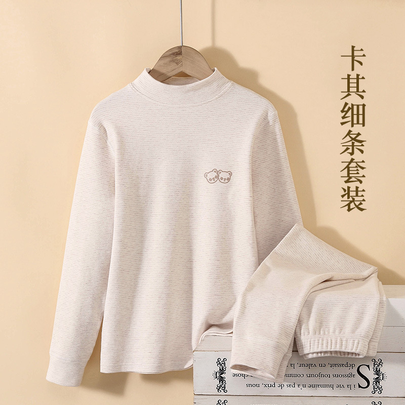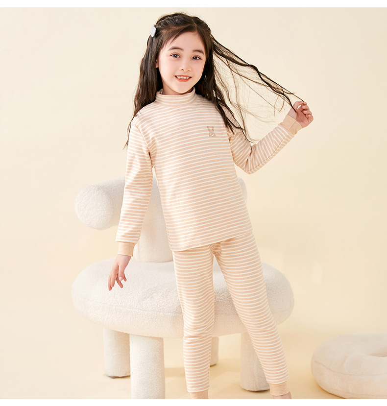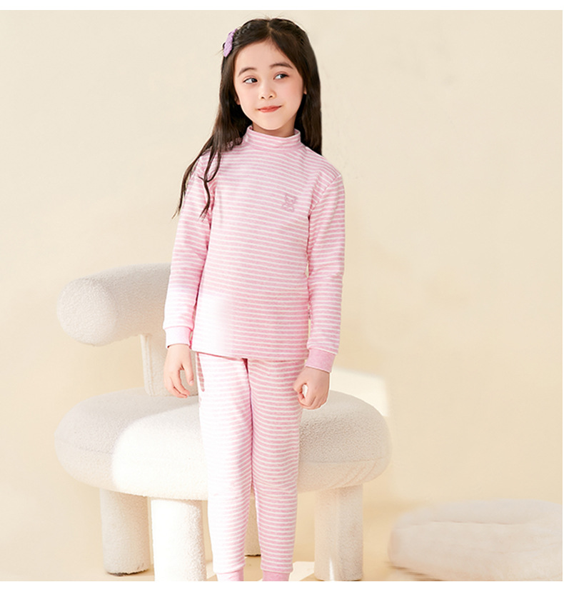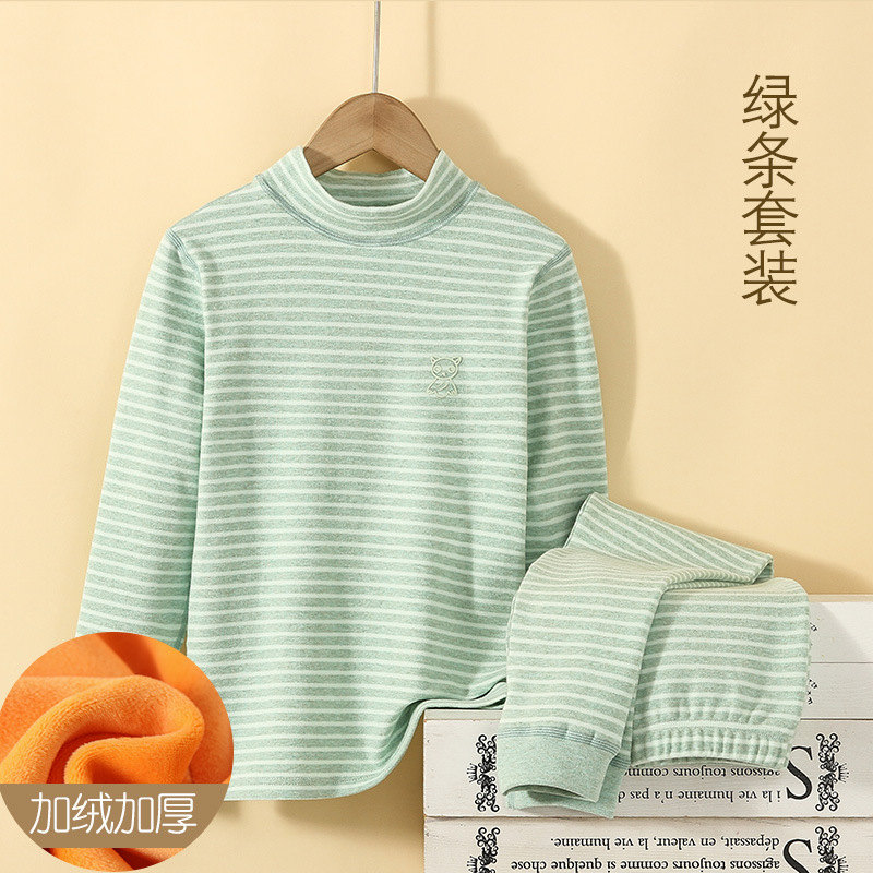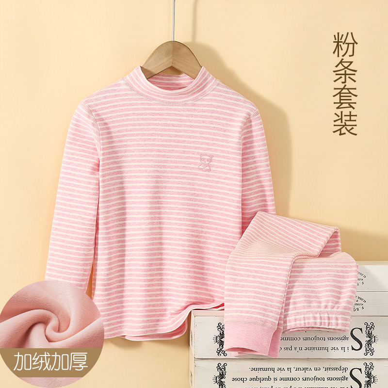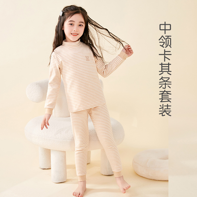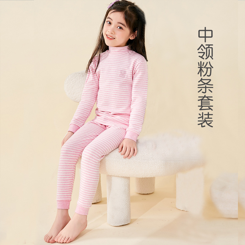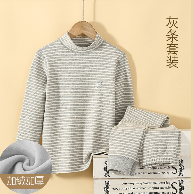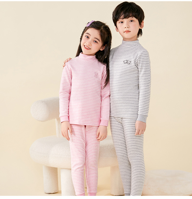 소년의 반 높은 칼라 가을 옷과 가을 바지 큰 어린이와 소녀 스트라이프 세트 유행 어린이 컬러 면 중간 칼라 열 속옷스토어 가기