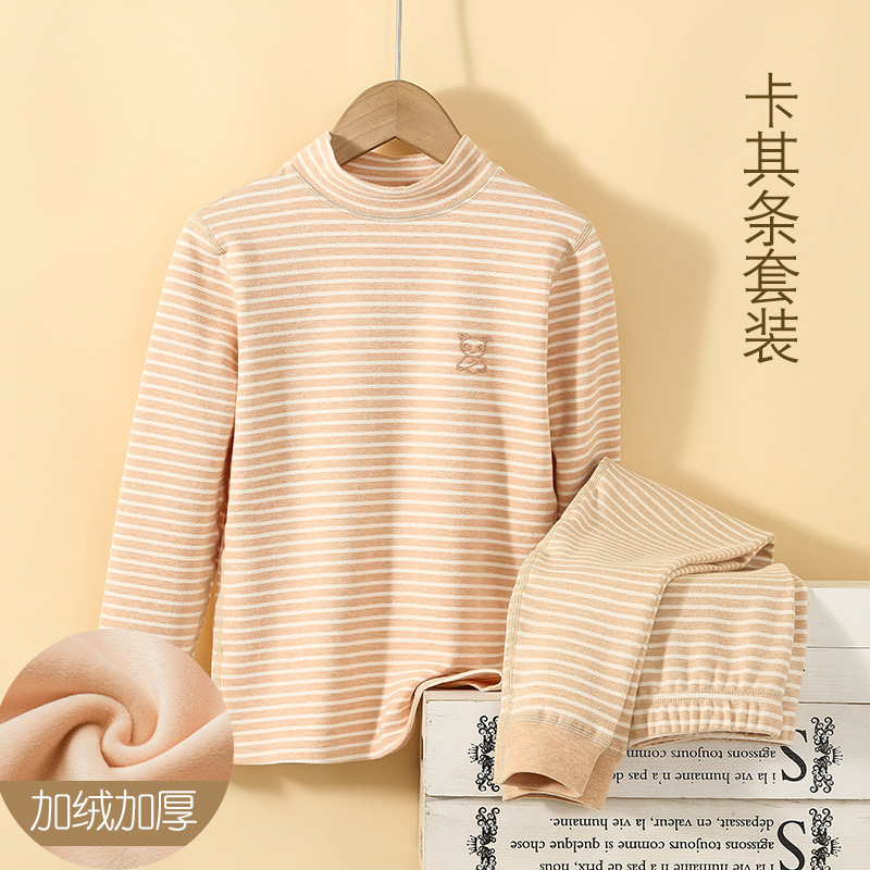 소년의 반 높은 칼라 가을 옷과 가을 바지 큰 어린이와 소녀 스트라이프 세트 유행 어린이 컬러 면 중간 칼라 열 속옷