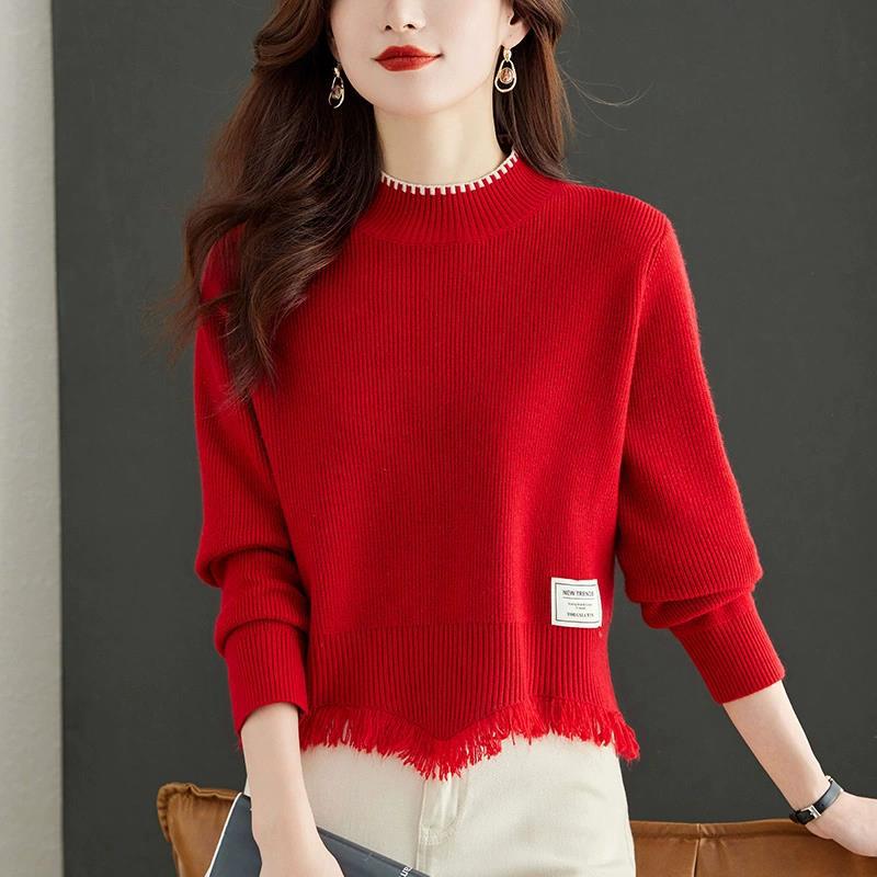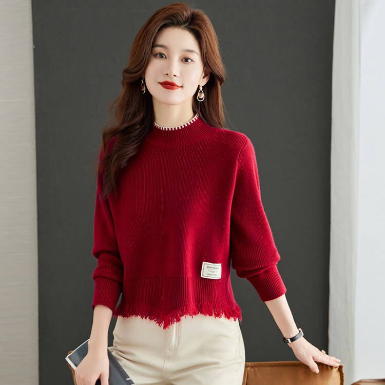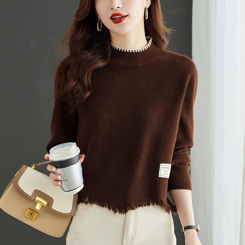 하프 터틀넥 술 스웨터 여성의 가을과 겨울 2023 스커트 탑 니트베이스 셔츠가있는 새로운 패션 하이 웨이스트스토어 가기