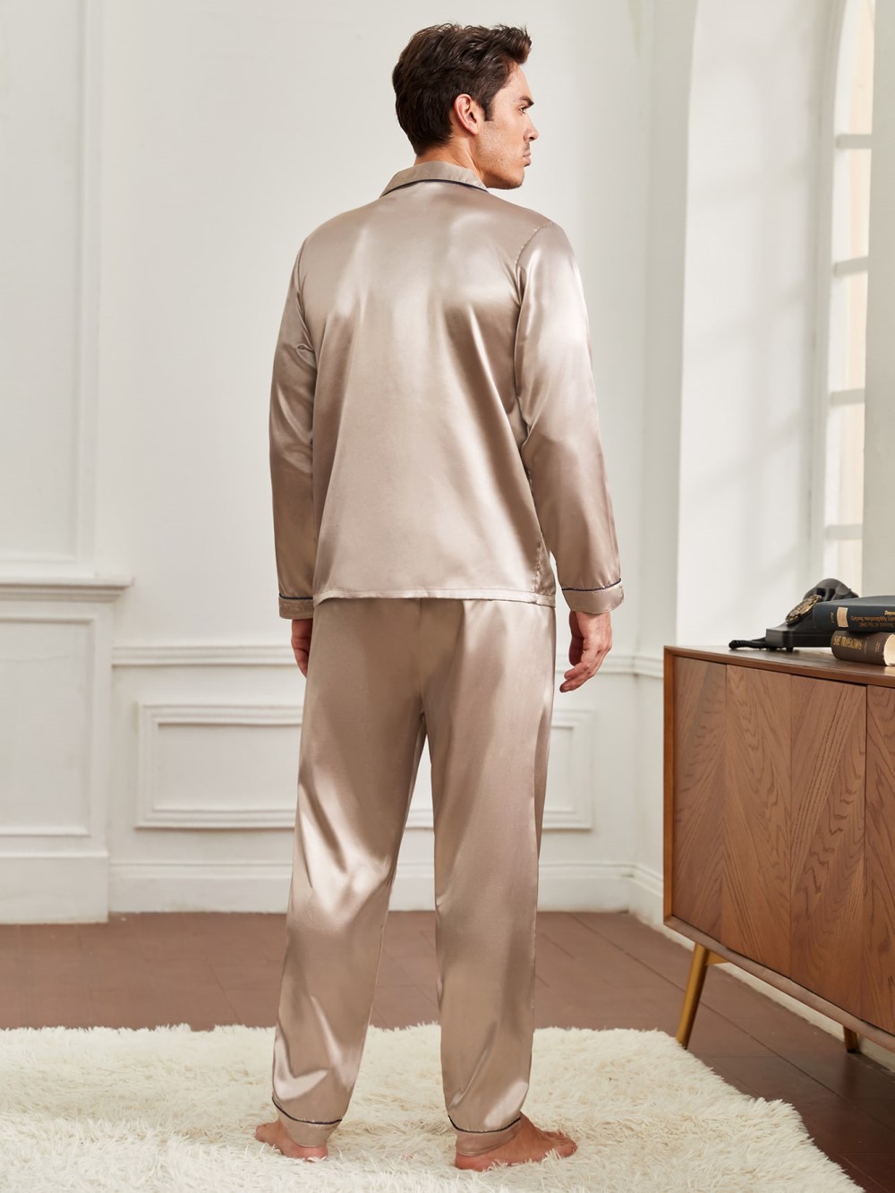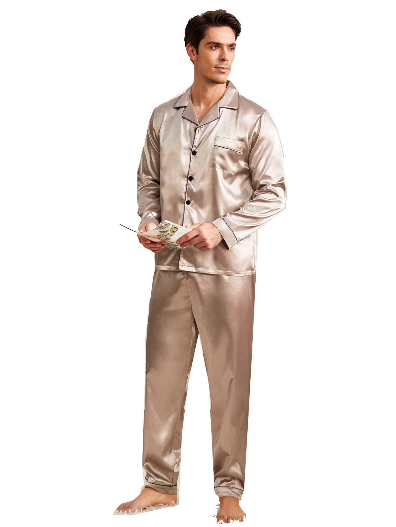 유럽과 미국 가정 의류 남자의 긴 소매 바지 정어리 잠옷 세트 투 피스 가정 의류 럭셔리 중동 플러스 사이즈