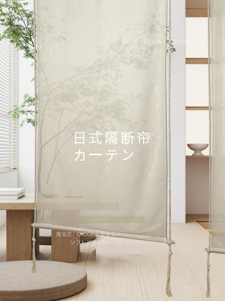 일본식 칸막이 커튼 린넨 거즈 커튼 현관 입구 스크린 차실 정자 문 커튼 신형 미니멀리스트