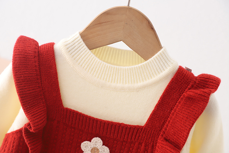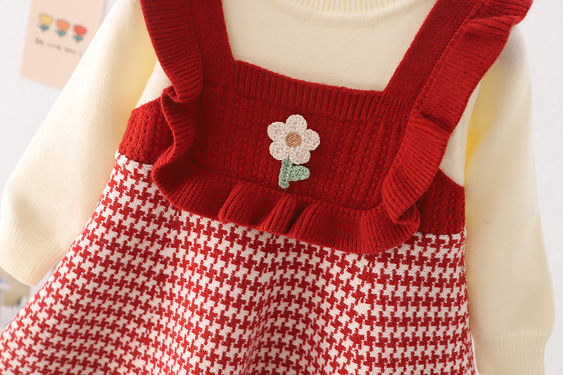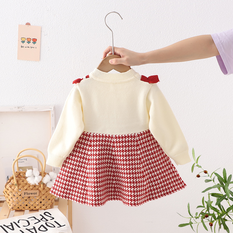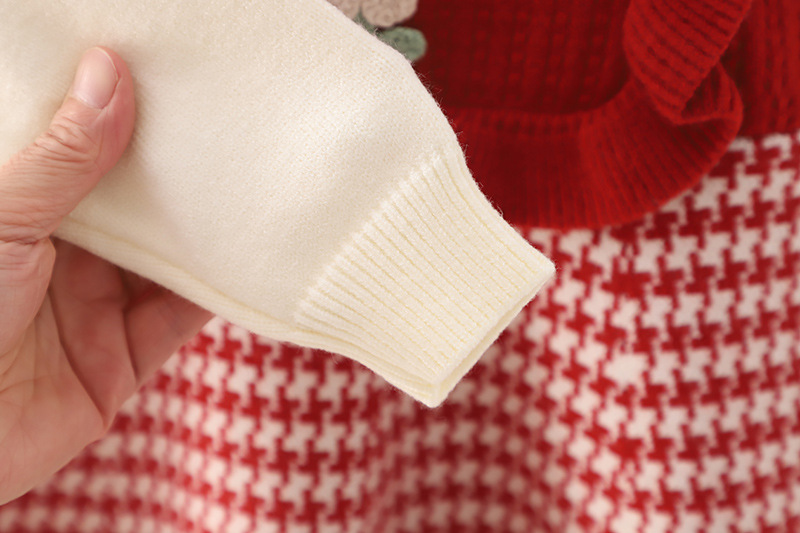 어린이 스웨터 2024 새로운 가을과 겨울 한국 여자 스웨터 원피스 튤립 격자 무늬 풀오버스토어 가기