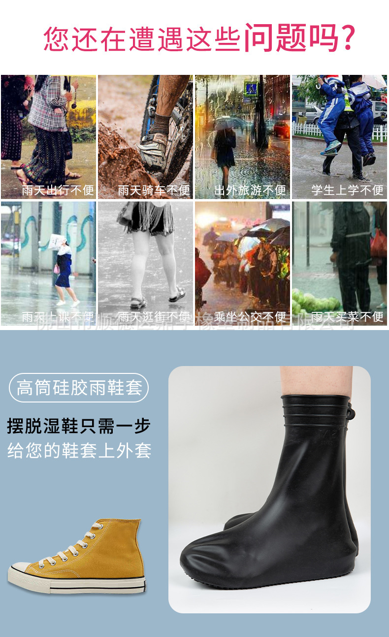 국경을 넘는 신제품 야외 휴대용 두꺼운 하이탑 방수 미끄럼 방지 실리콘 신발 커버 남녀 공용스토어 가기