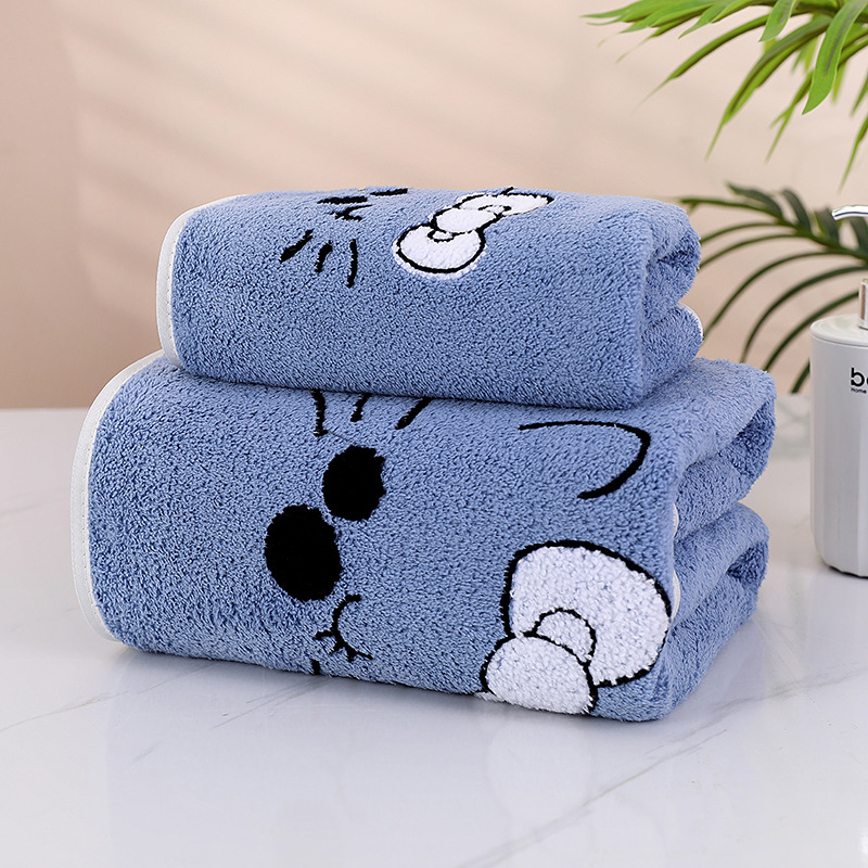 산호 벨벳 타월 목욕 타월 부드럽고 흡수력이 좋은 목욕 타월 만화 자수 가장자리 처리 타월 세트 매우 부드러운 선물 상자 포장스토어 가기